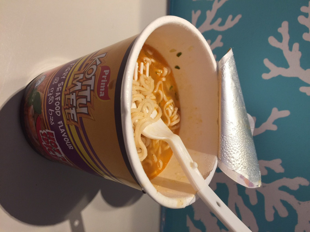 吃的非常有必要,因为在飞机上是6点多的晚餐,机餐是超少的一盒鸡肉饭,女的吃还行,老公说还不够塞牙缝😂结果饿到了酒店,幸好房间有提供了两盒方便面,救星啊!