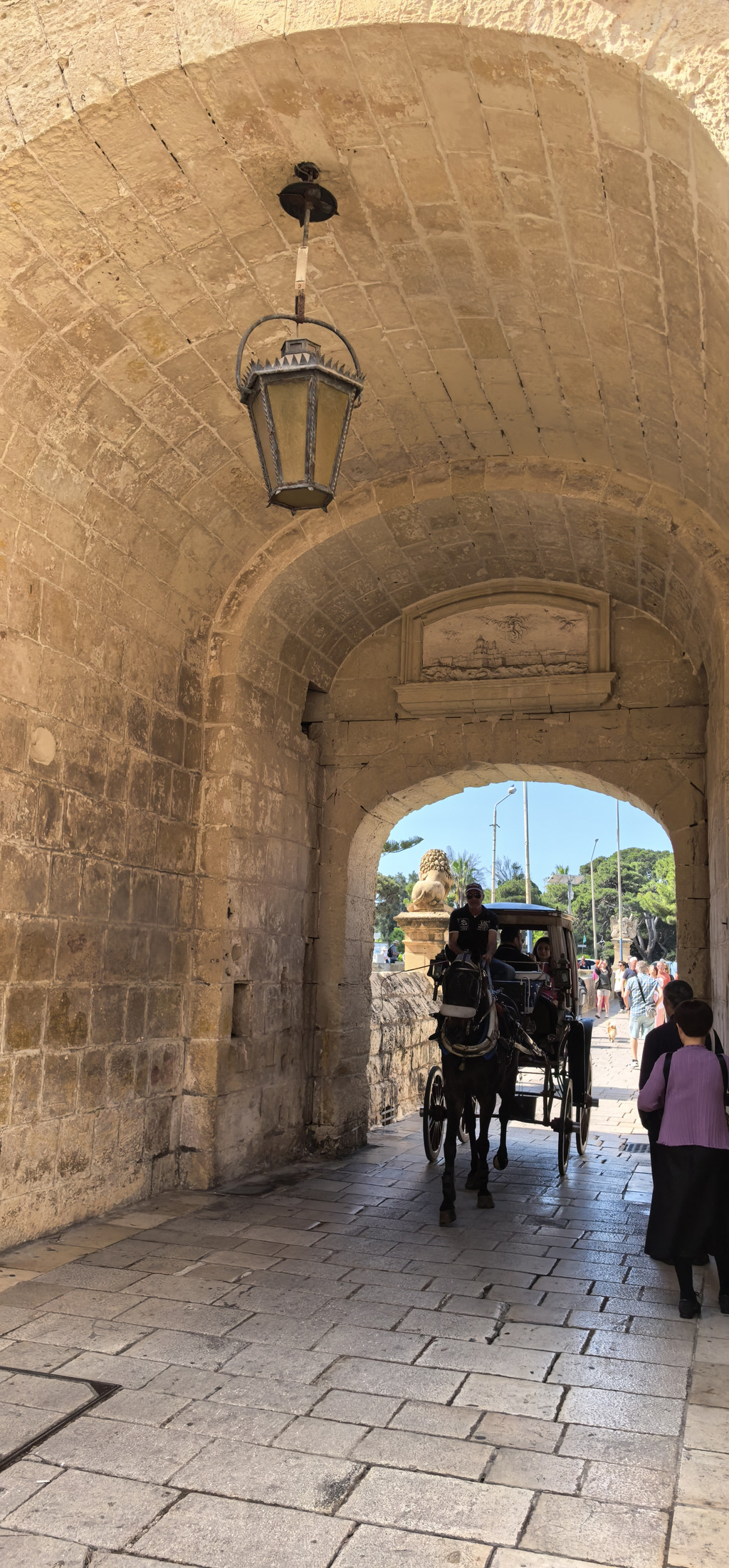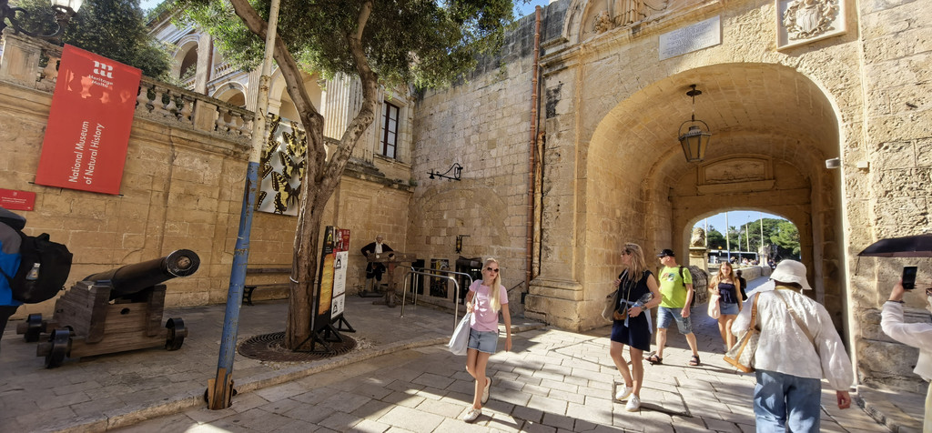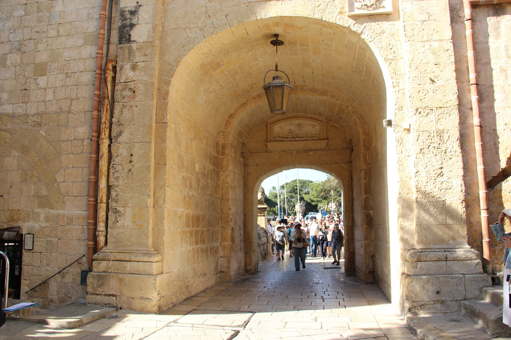 来到了姆迪纳老城的入门处,姆迪纳门是姆迪纳古城唯一的城门,陆上唯一的出入口,那扇在《权力的游戏》中出镜的著名大门,凯特琳私自前往君临见奈德,骑马进入和离开的城门,都在这里取景。