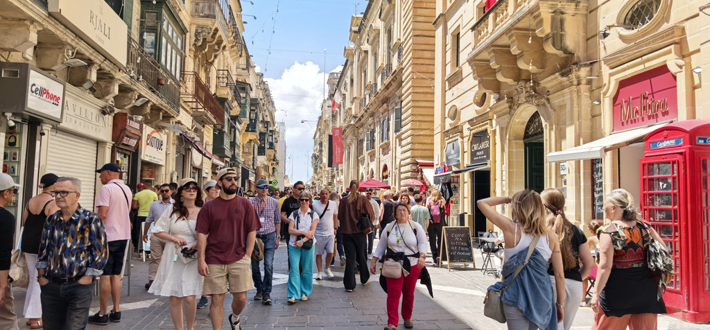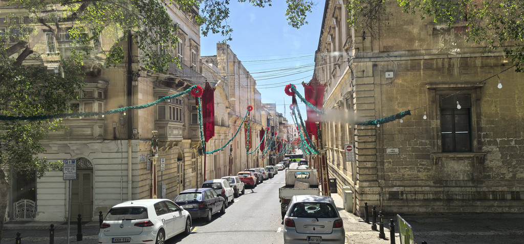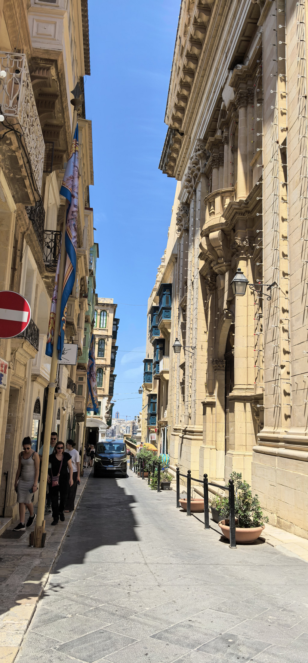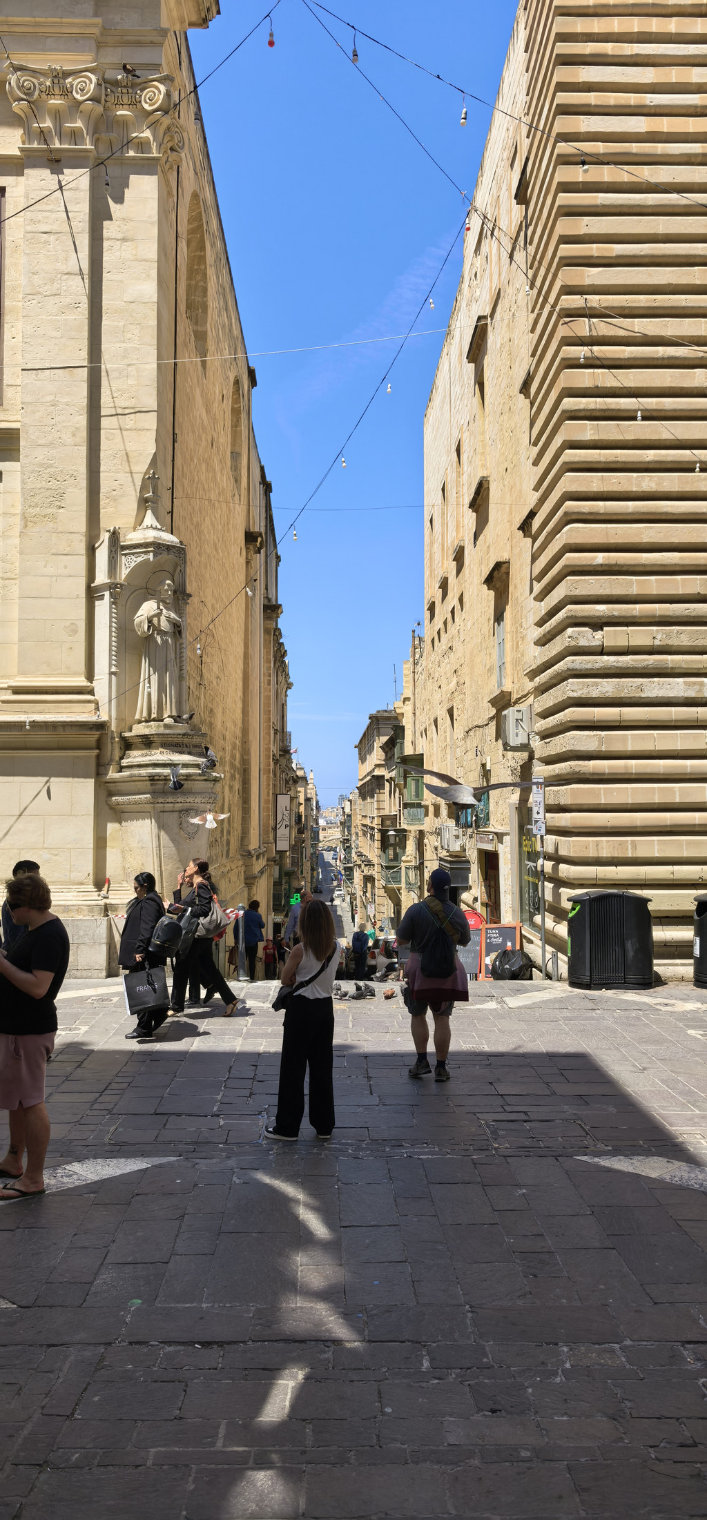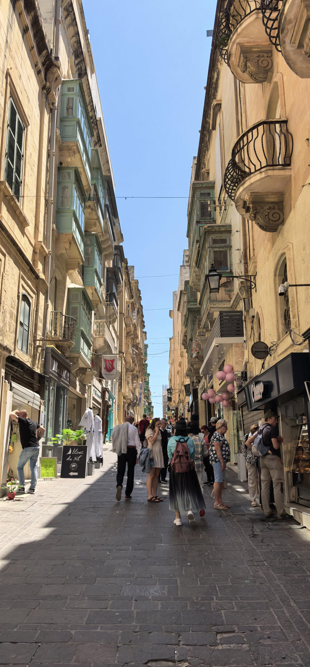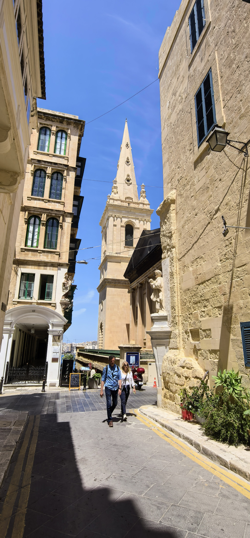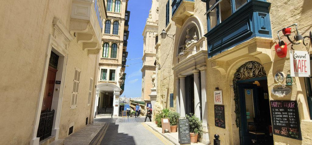 这条街上随处可见巴洛克风格的建筑和蜿蜒曲折的小巷,充满了古老而神秘的氛围。街道的一端,矗立着宏伟的圆顶教堂,与瓦莱塔其他建筑的巴洛克风格相得益彰,烘托出旧时代的庄严与辉煌。