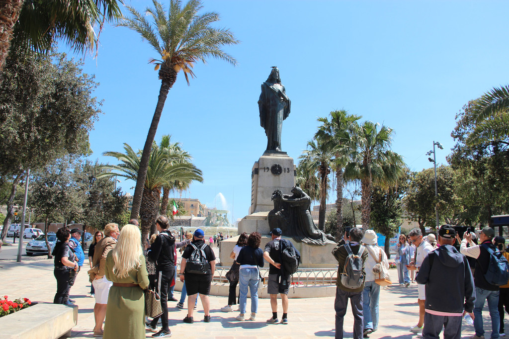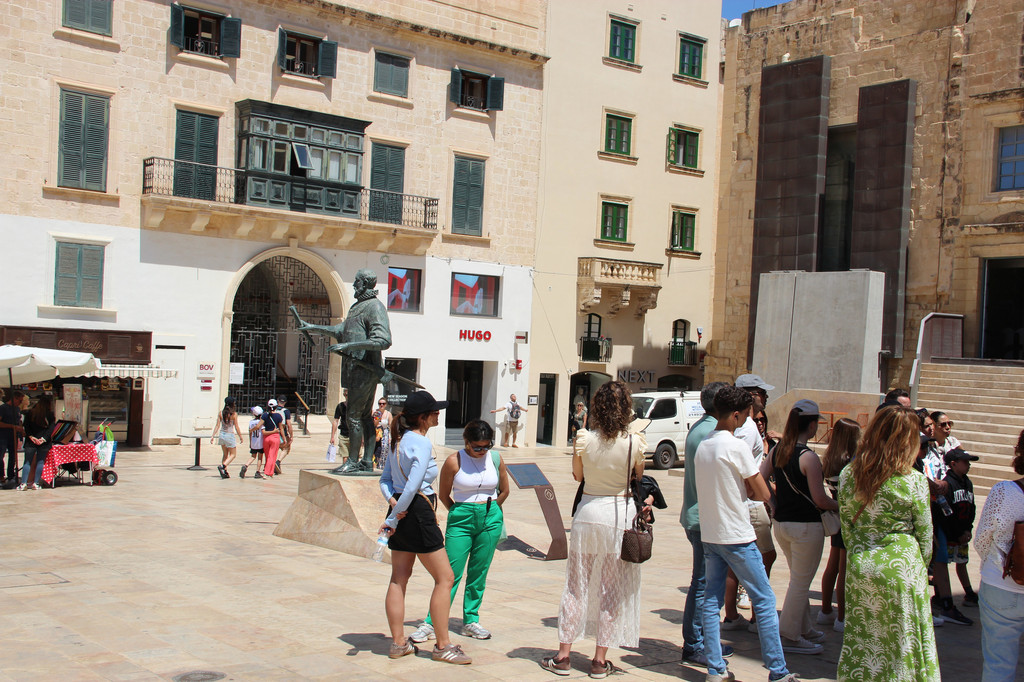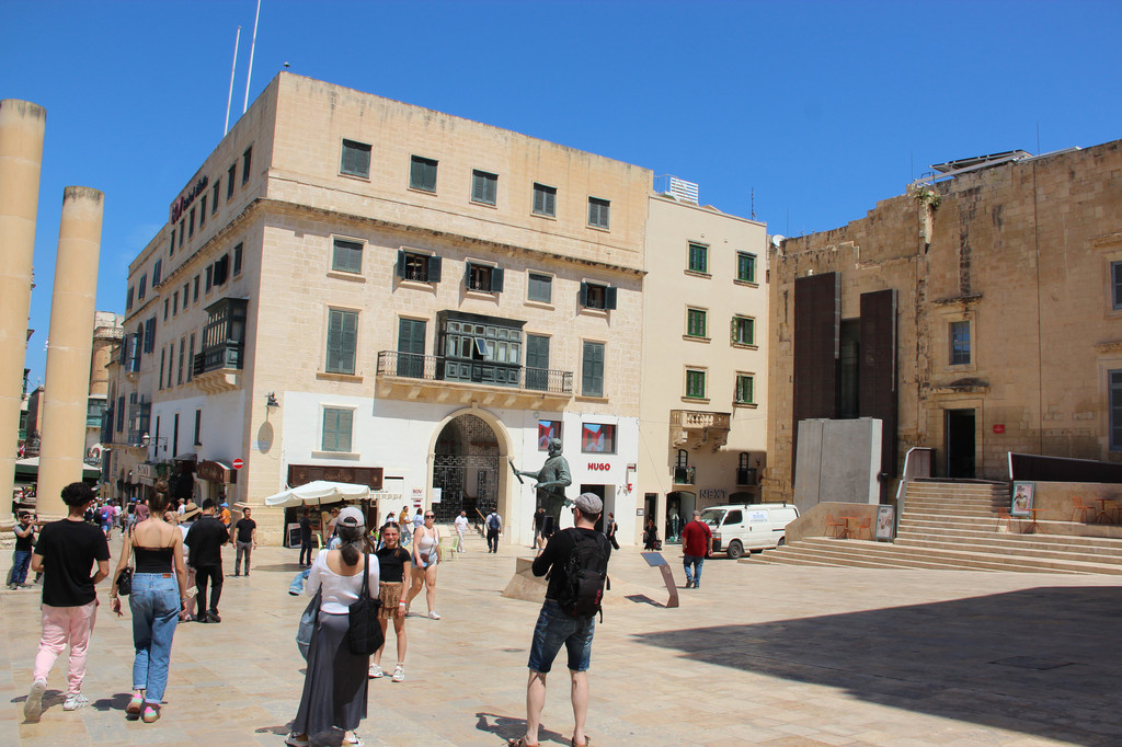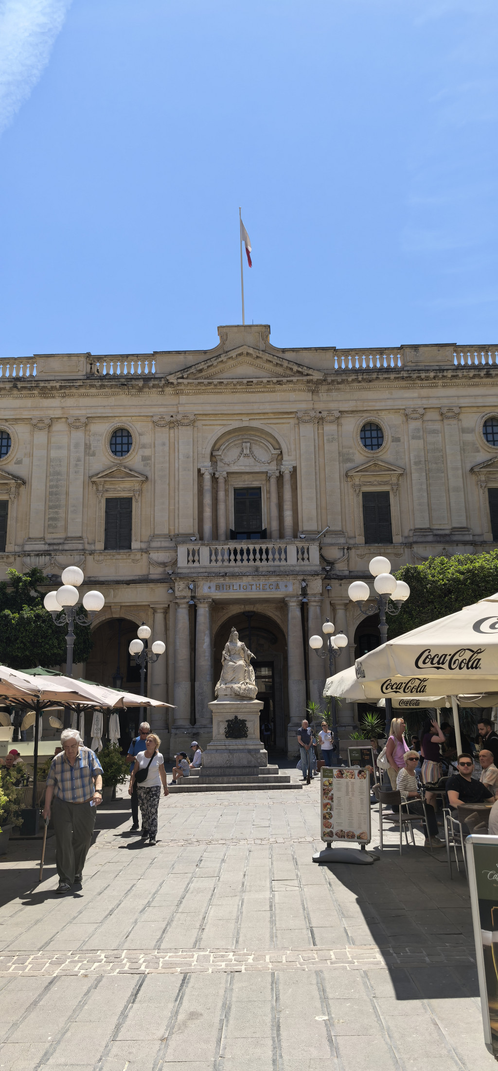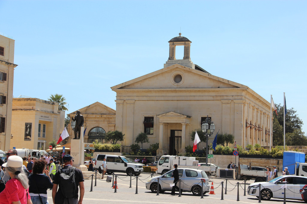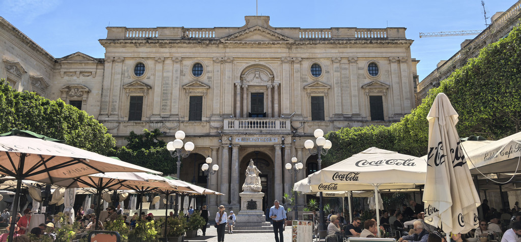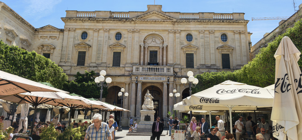 广场上仍保留着伊丽莎白女王塑像。周围分布着王宫等宏大的建筑,背后是马耳他国家图书馆。