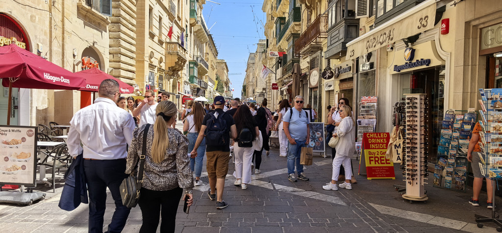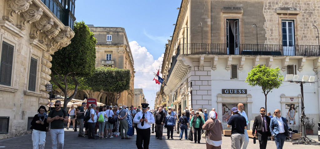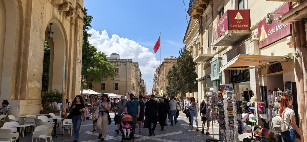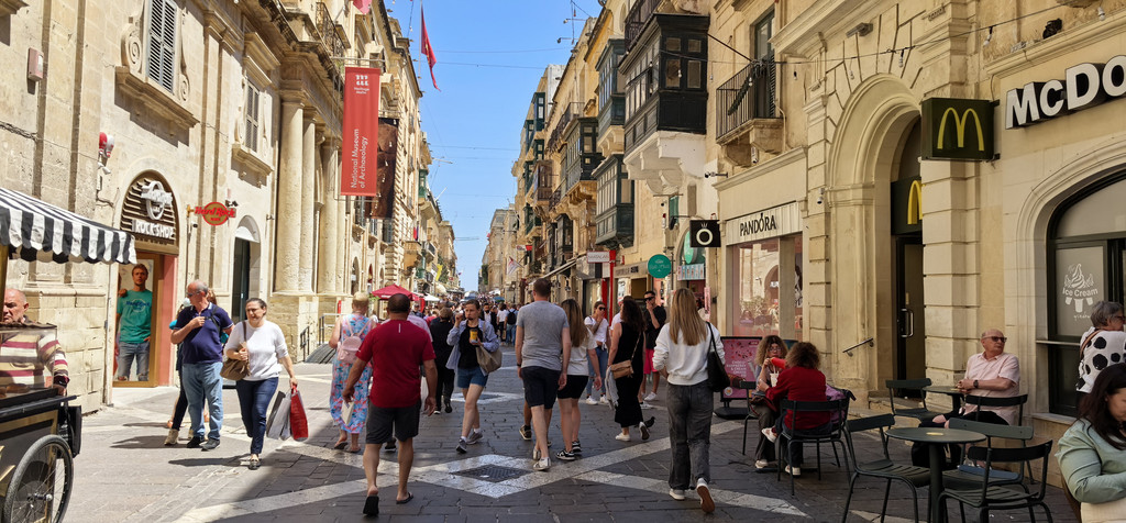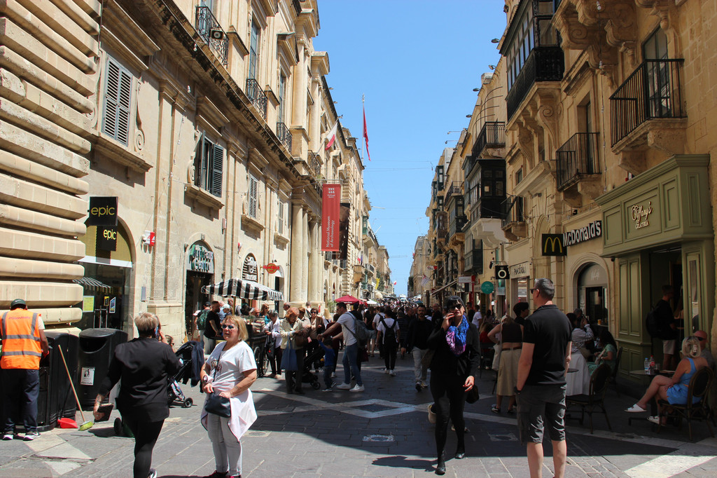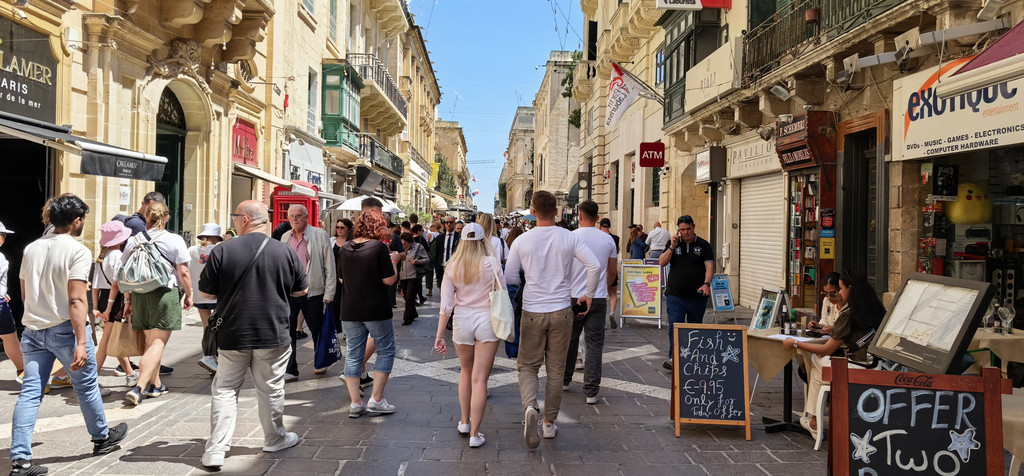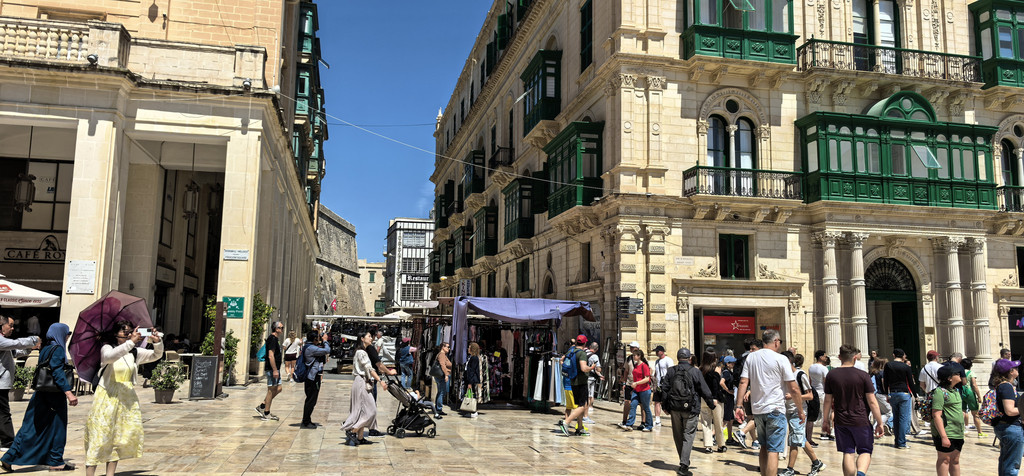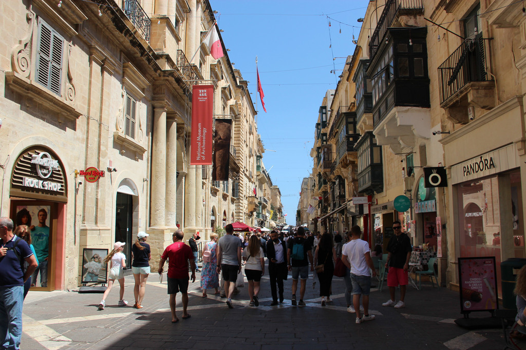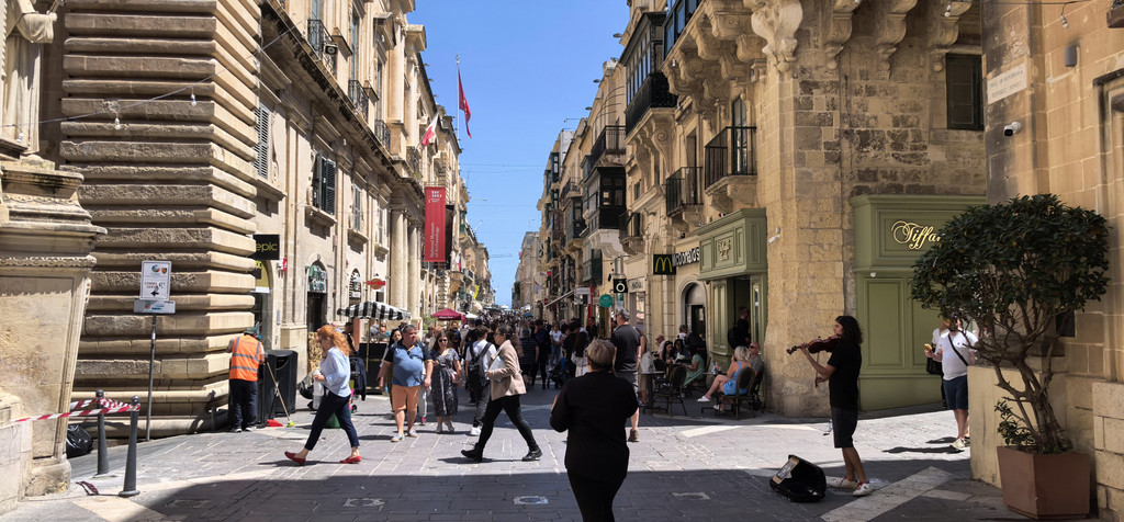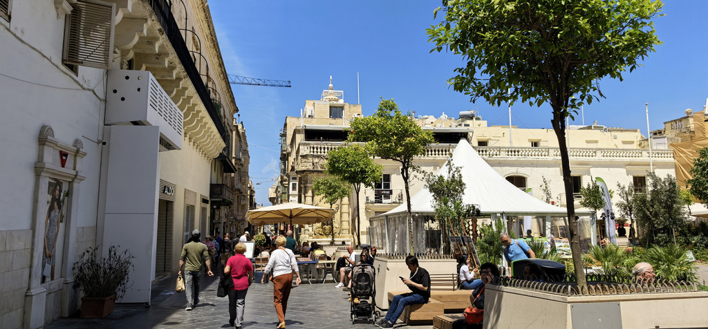 继续沿着共和国街向前逛街,共和国街是瓦莱塔城的中轴线,一条典型的欧式街道。街道两边布满了商店、餐厅和露天的咖啡茶座。