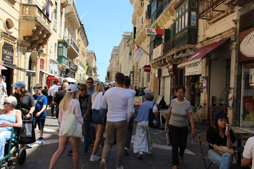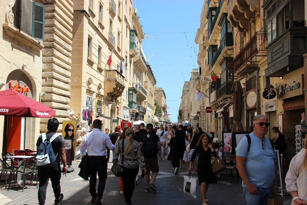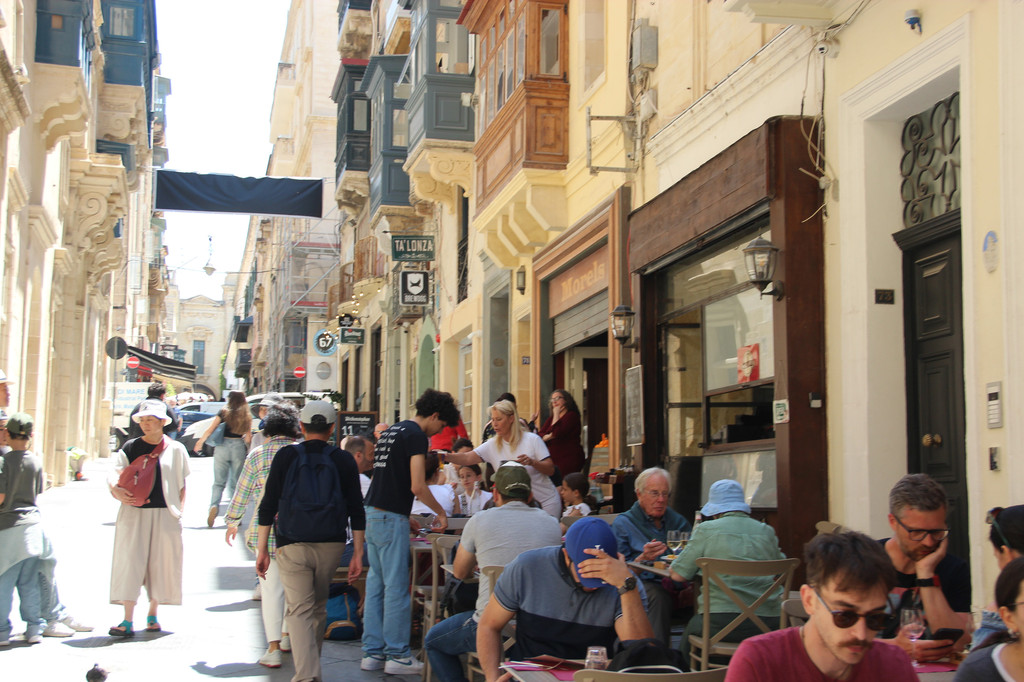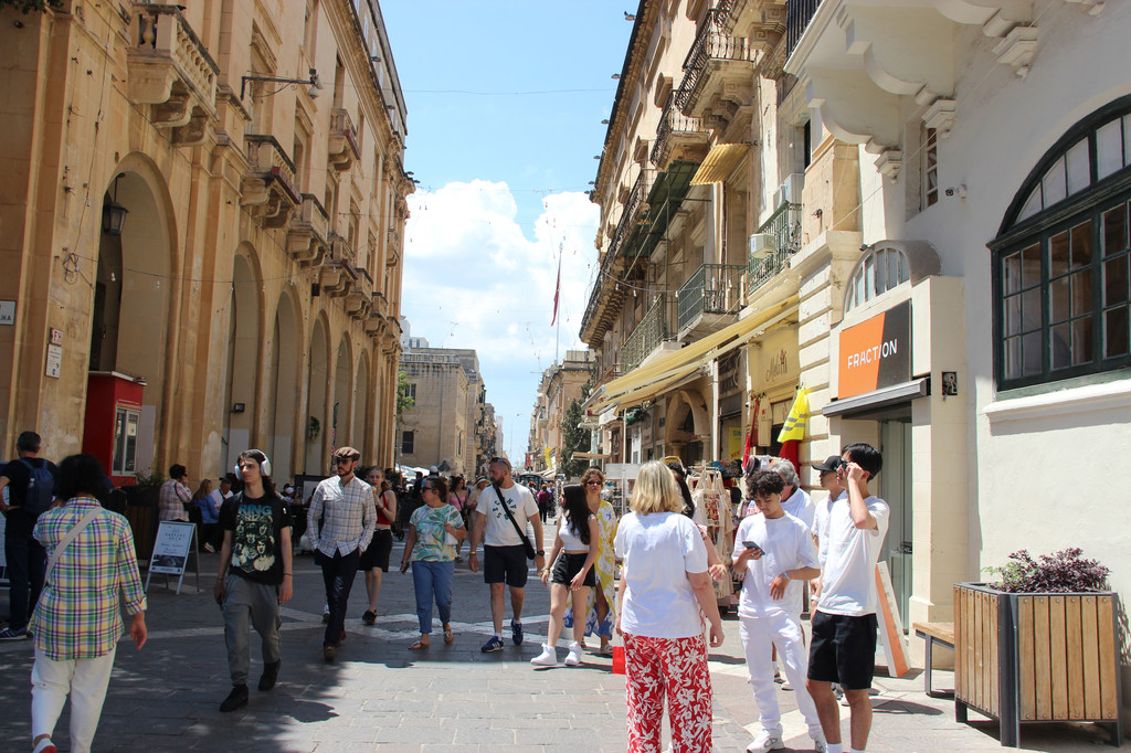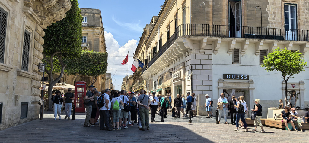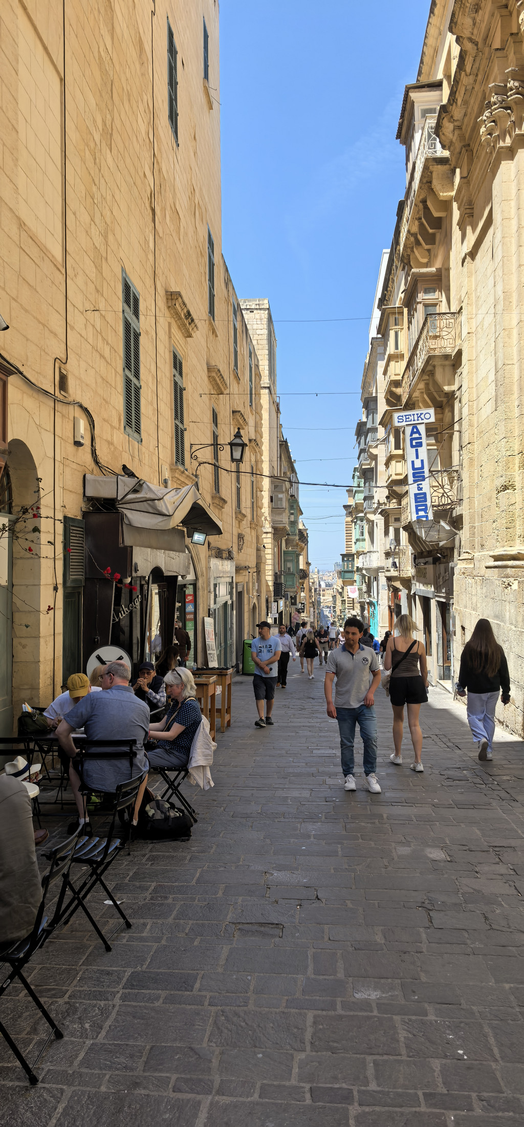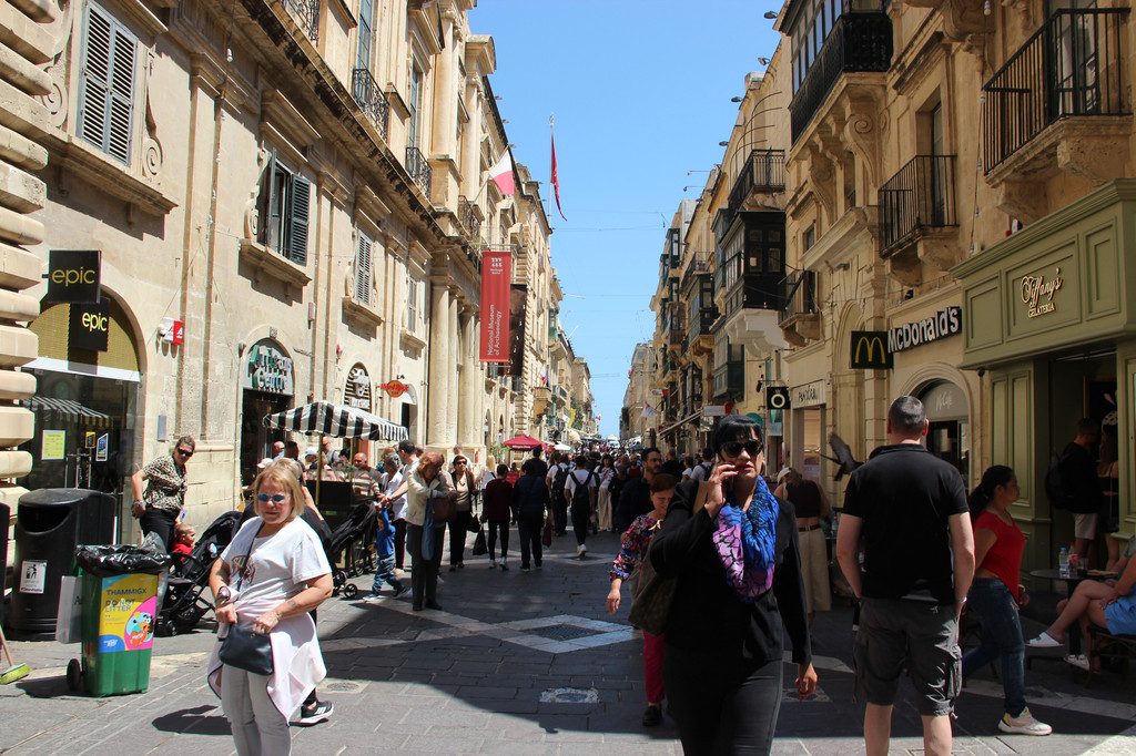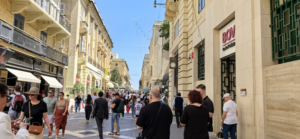 继续沿着共和国街向前逛街,共和国街是瓦莱塔城的中轴线,一条典型的欧式街道。街道两边布满了商店、餐厅和露天的咖啡茶座。