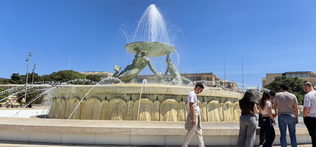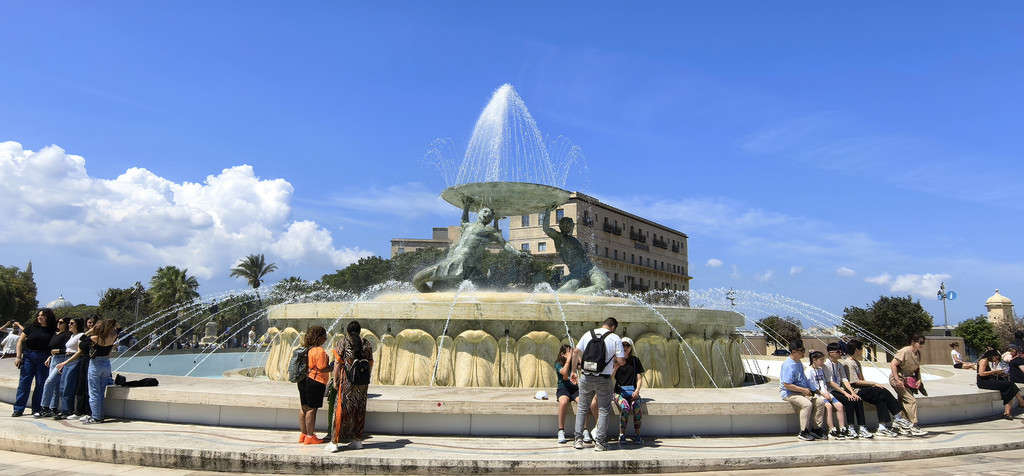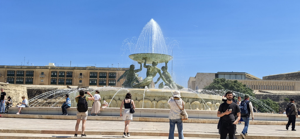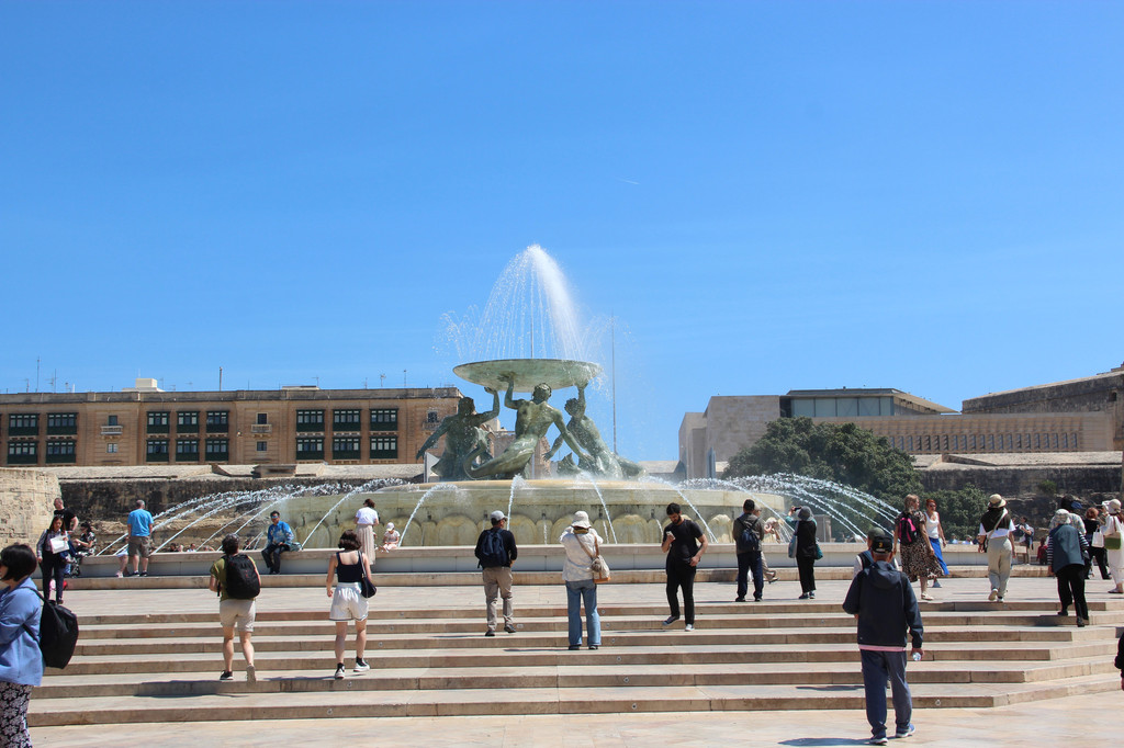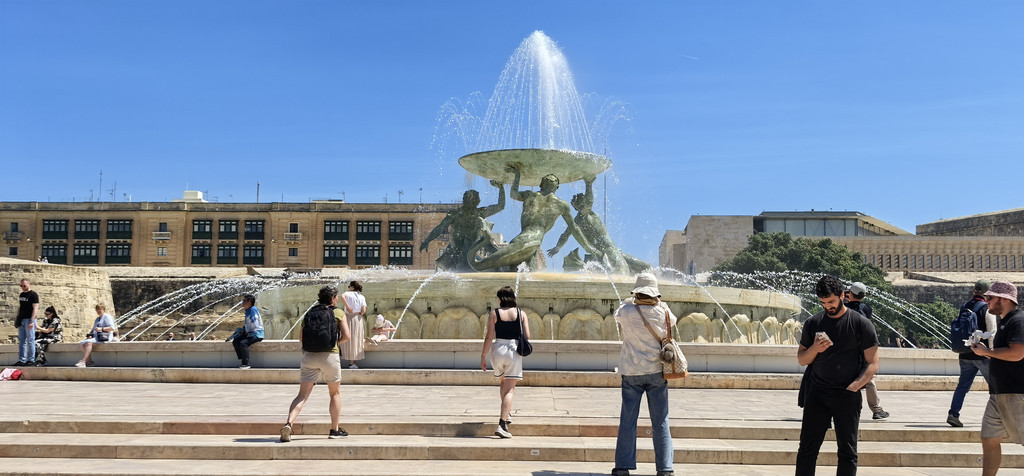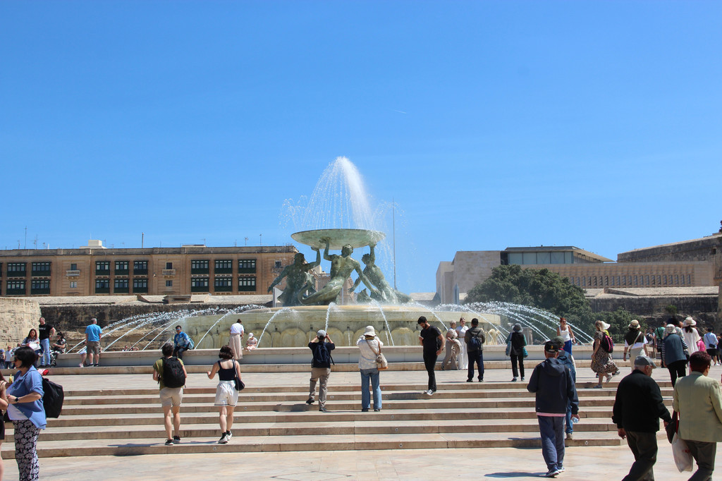 瓦莱塔特里谢广场中央是“三海神”喷泉,自1959年由马耳他杰出雕塑家文森特·阿帕精心设计并建成以来,便成为了这座城市不可或缺的景点之一。“三海神”喷泉 是瓦莱塔的标志性建筑。这座喷泉以三个海神共同托举一个托盘的景象为设计灵感,展现了古希腊神话中掌管海洋的信使——海神特里同的威严与力量。