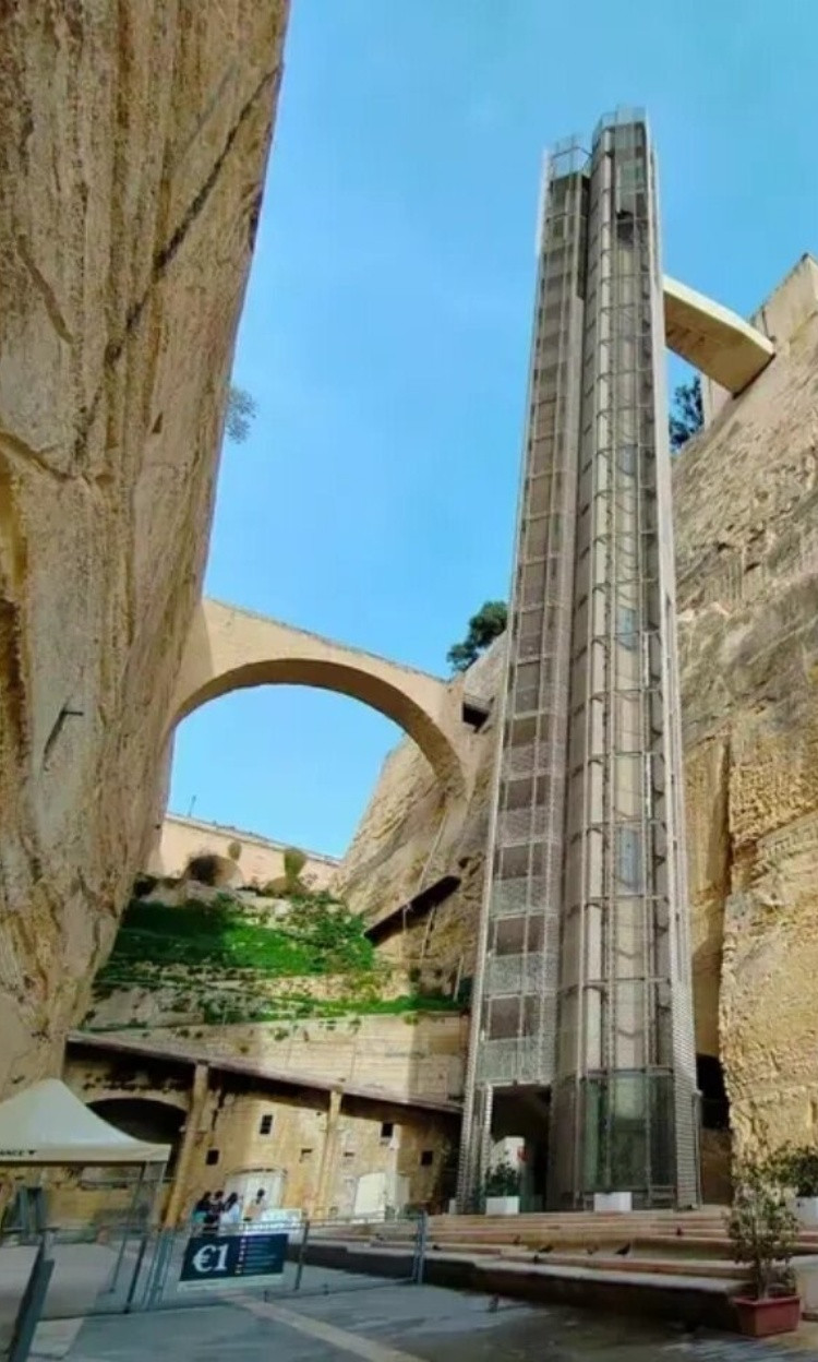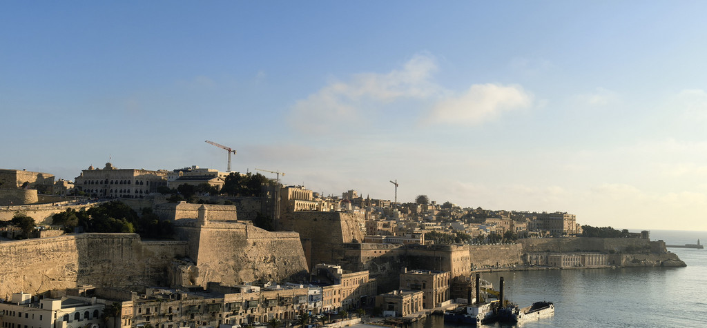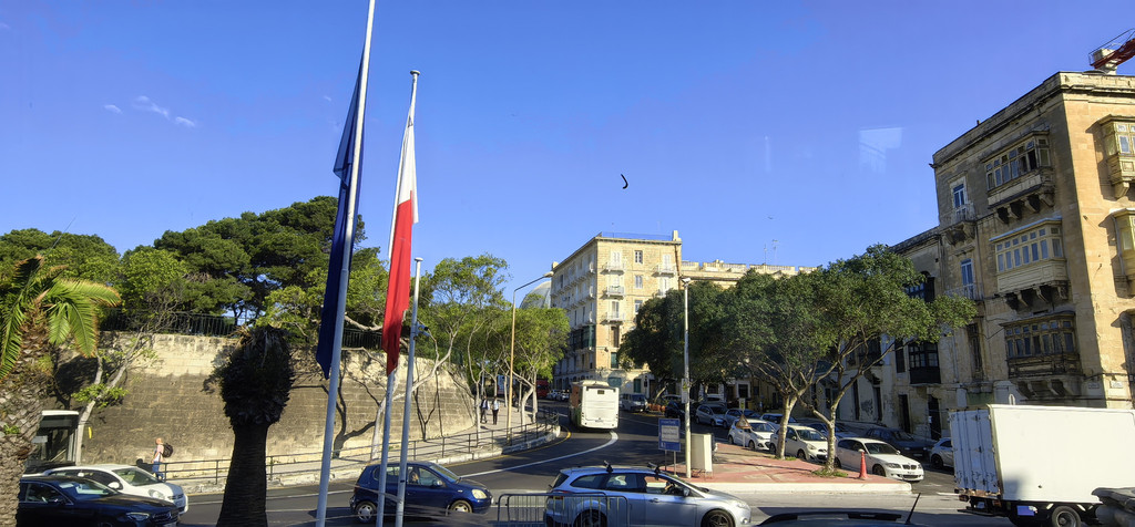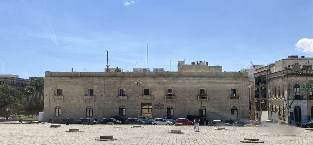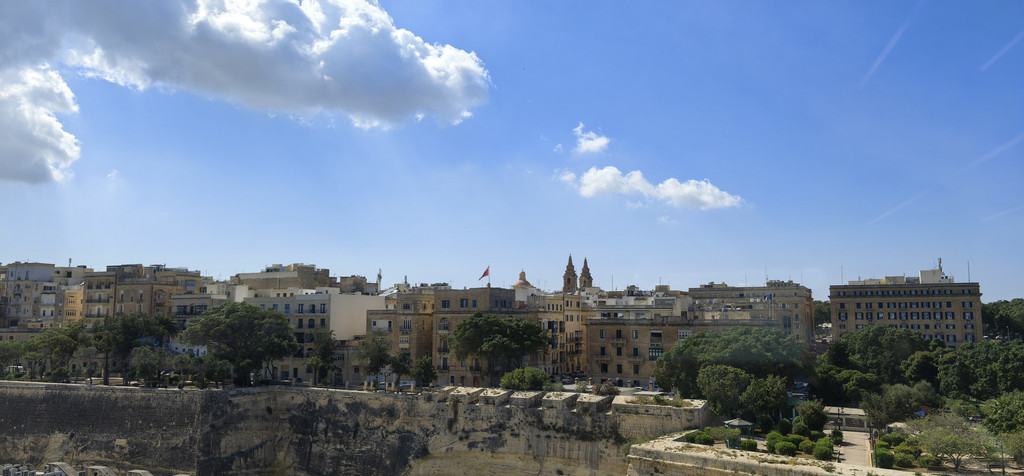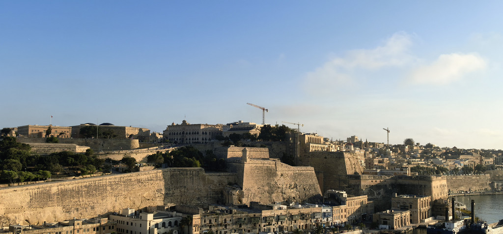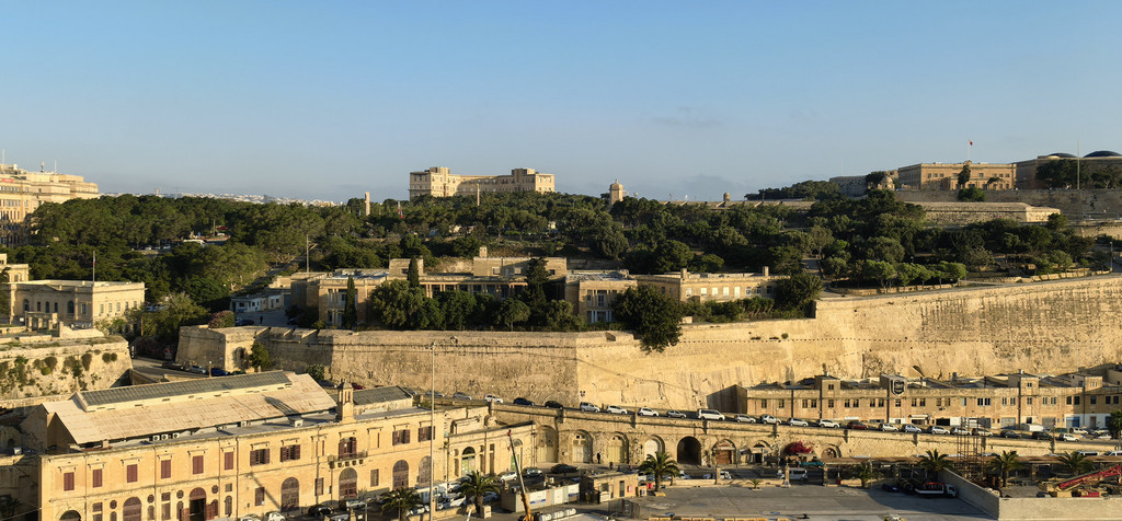 左上此楼就是马耳他议会,这是一个与瓦莱塔城建筑风格不太兼容的建筑,因为这个议会是2011年才开始建造,2015年建成的现代建筑,之前这里是一个停车场。其现代化的建筑风格使得建筑过程极具争议。
