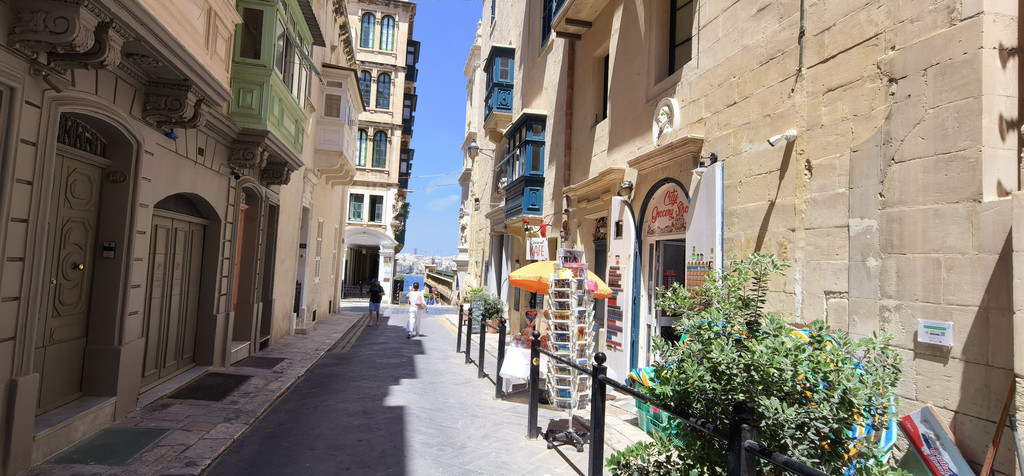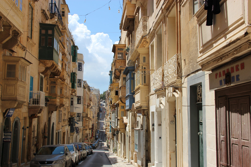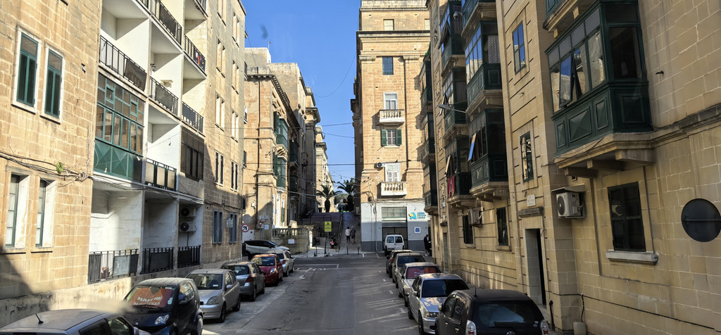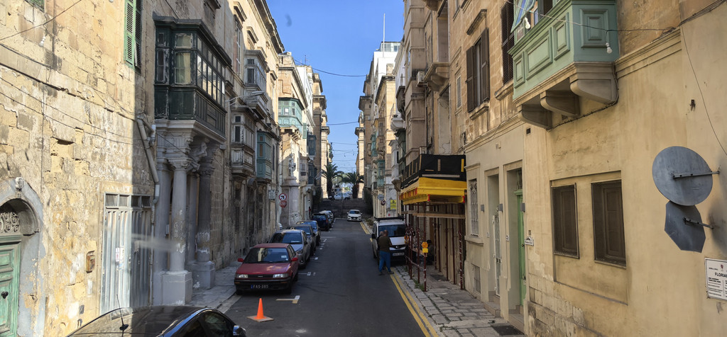 瓦莱塔的惊喜在离开主街共和街前往旁边的支路,市道路不宽,街巷依丘岭地形起伏修筑,形成适合观赏的层次;用沙漠色石块砌成的房屋,有彩色的飘窗或骑楼式阳台点缀,形成了瓦莱塔建筑的特色,既古意盎然,又活泼可爱,富有观赏性。