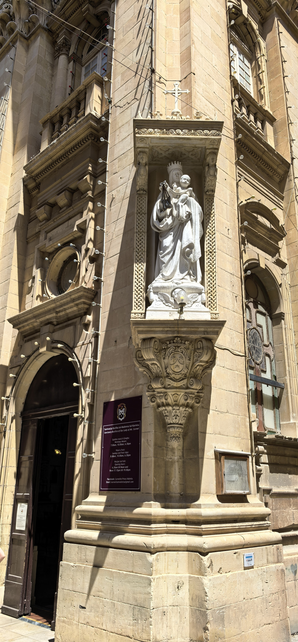 这座教堂就藏在狭窄的瓦莱塔街巷内,与周围的建筑紧密相邻,不留意的话,可能都会看不到其巨大的圆顶。