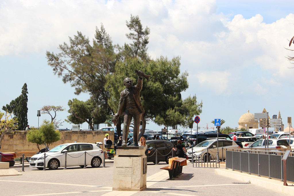 广场上矗立着一尊塑像:Manwel Dimech,1860-1921,中文不知道怎么翻,权且译作曼维尔.迪米克吧。马耳他著名的社会活动家,独立运动的理论创始人,哲学家、作家和诗人。后被流放囚禁在埃及亚历山大里亚,并死在那里。