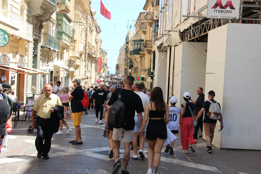 经过彩虹旗街区,这些街道上飘扬着彩虹旗,是瓦莱塔的标志性地点之一。