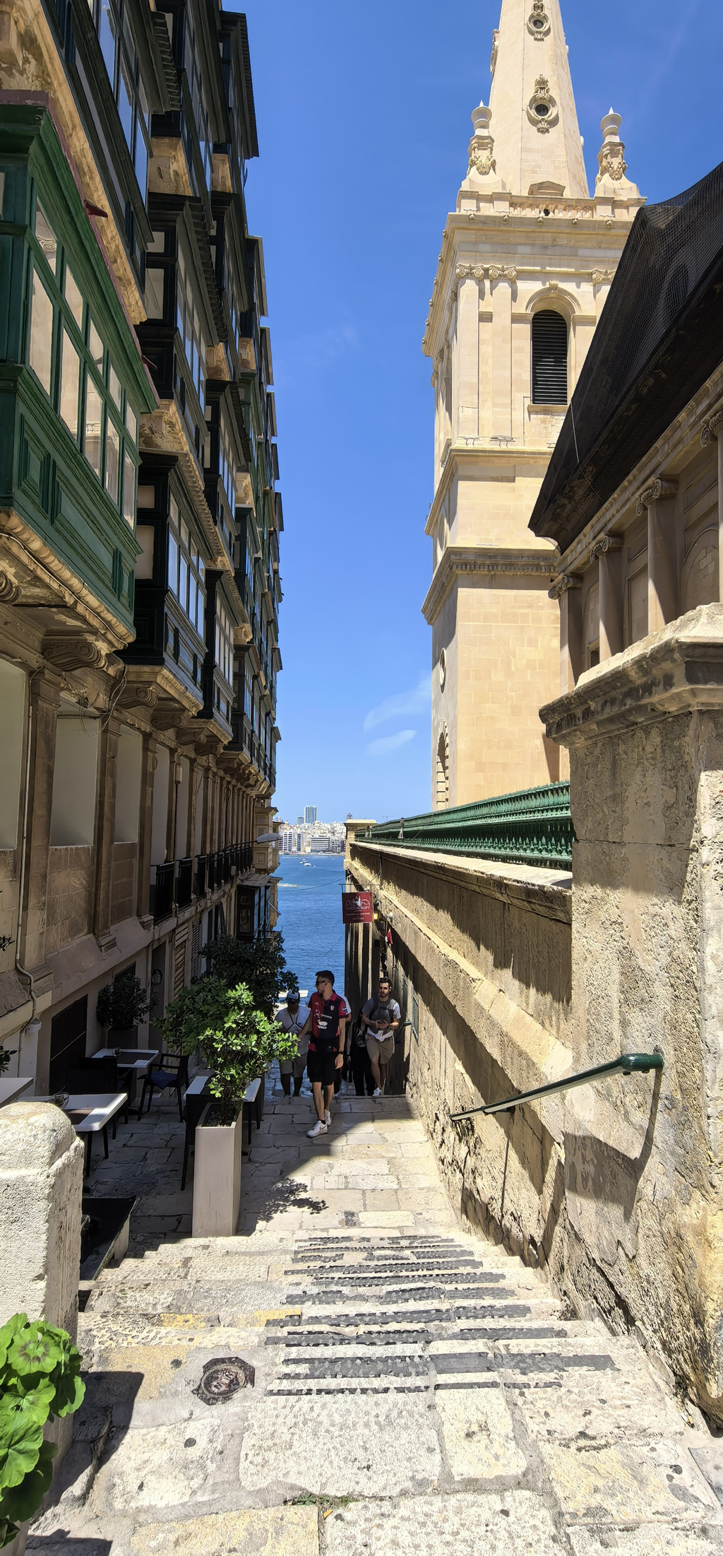 漫步瓦莱塔街巷,扭头眼看到街道的尽头就是海。