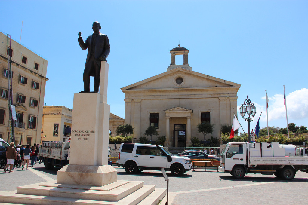 塑像后面是马耳他证券交易所的正门,矗立的塑像是乔治.伯格.奥利维尔(1911-1980)。他曾两次出任马耳他总理。