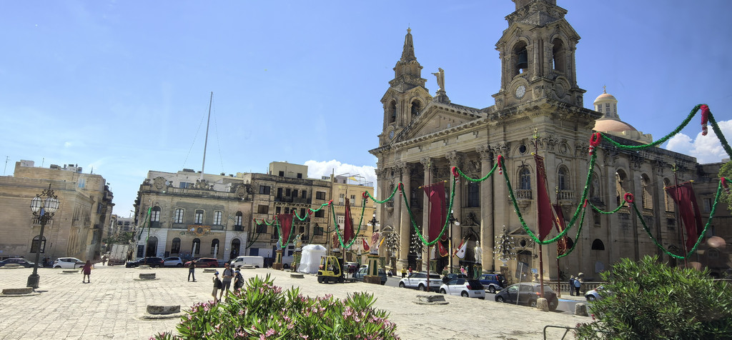 这是圣普布利乌斯教区教堂,普布利乌斯是圣保罗遇海难后到马耳他时的罗马执政官,后成为马耳他的首位大主教,并让全岛人信了基督教,后殉道封圣。教堂始建于1733年。