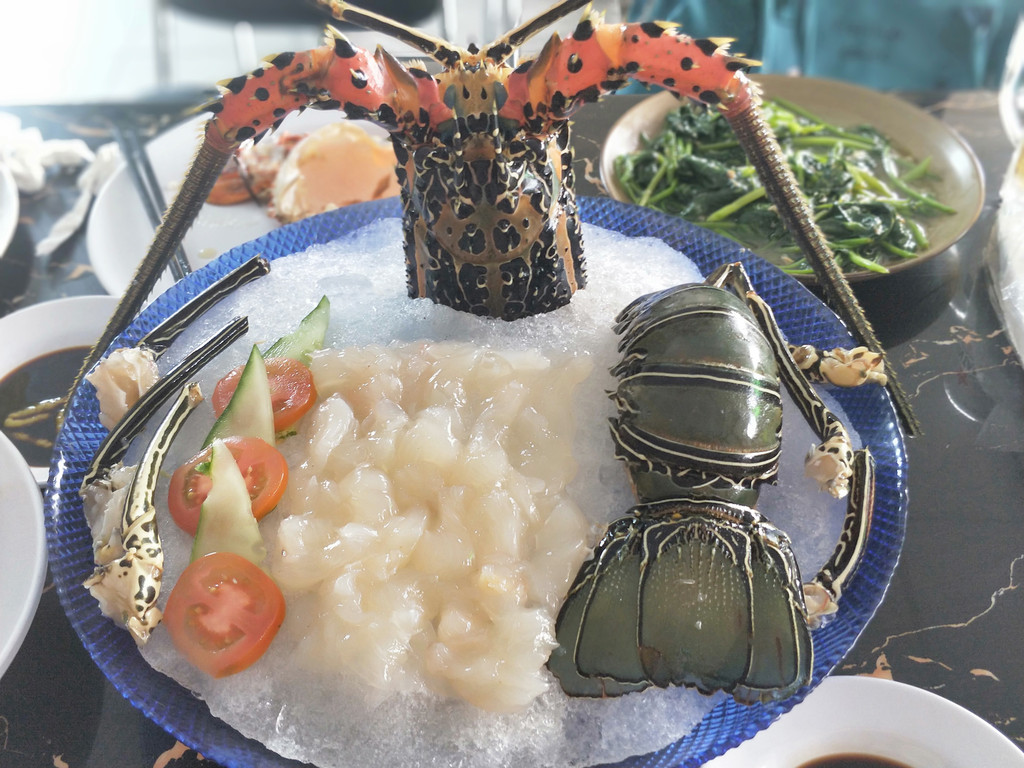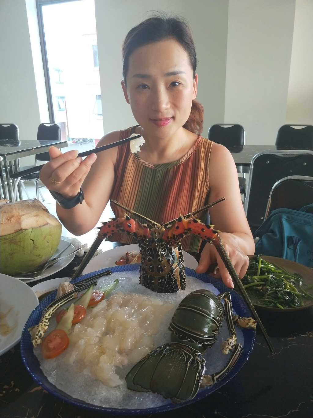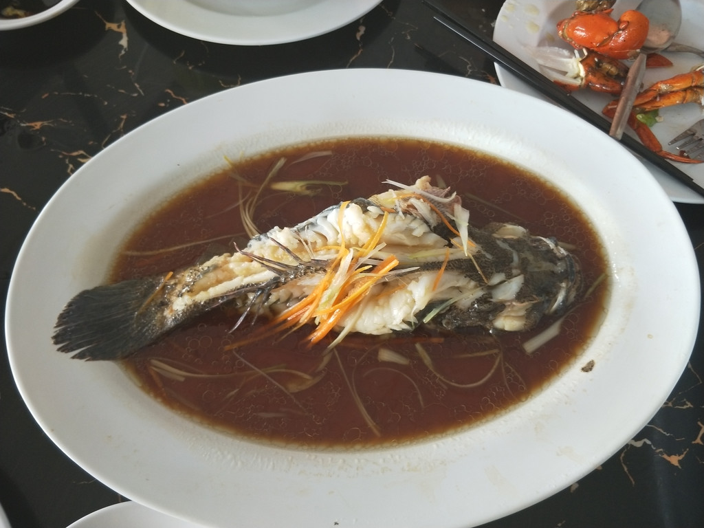 4、午餐——遇见渔家(海鲜大餐,龙虾288一斤),鱼,炒饭,蔬菜、螃蟹等,一顿780元人民币。清蒸鱼鲜到我无法忘怀,回上海连吃几顿鱼都食不知味。