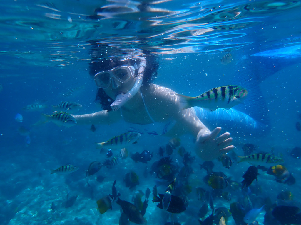 3、海上颠簸2小时候,90%能看到海豚。之后钓鱼,白沙滩用餐。浮潜等——强烈推荐今日深潜