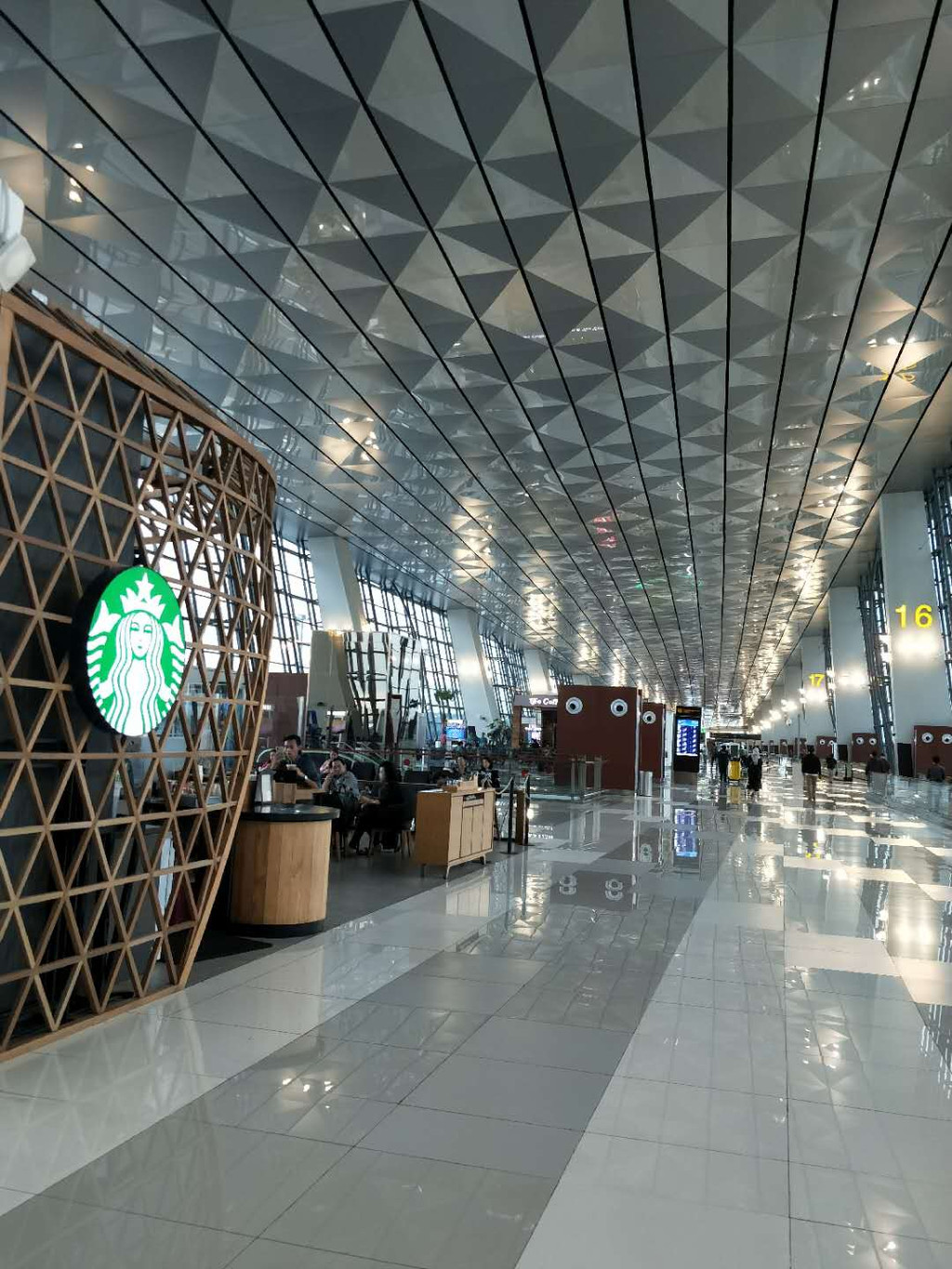 雅加达机场非常漂亮,相当整洁。尤其是对他们的厕所相当震惊。比起上海,厕所更干净,更整洁。因为他们的工作人员一刻不停地在清洁 。你用过一次, 他马上进行清洁。我曾看到 一个工作人员可能实在偷懒,直接坐在马桶蹲坑的地上进行休息。要是在上海,你愿意么?机场饮食、购物很方便。这点浦东机场应该改进下。