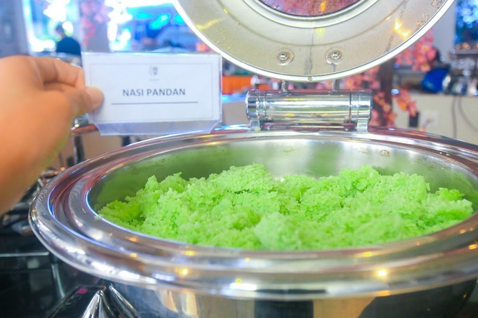 Nasi Pandan 也就是班兰叶饭。班兰叶是印尼、 新加坡 、 马来西亚 特有的一种热带绿色植物,味道香甜。但由于我对异域食物的接受度较低,还是吃不习惯。