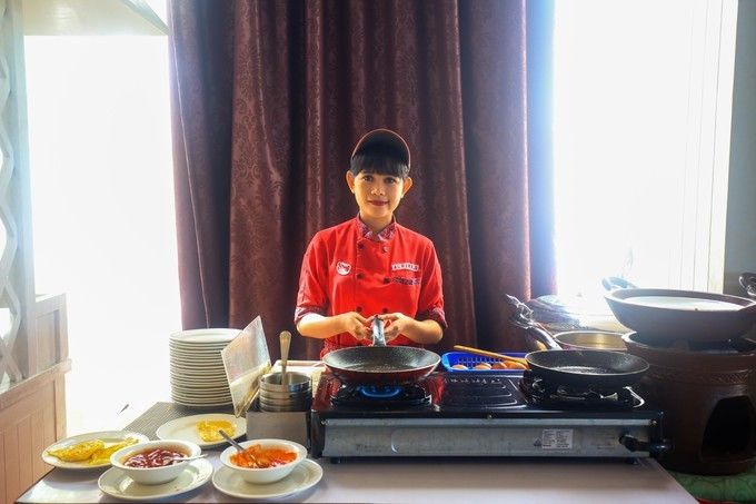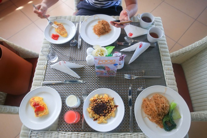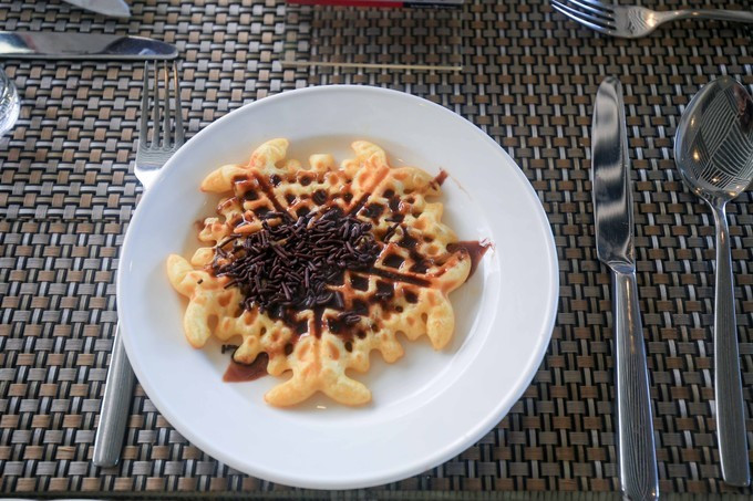 我还是乖乖吃华夫饼、炒蛋和炒米粉。