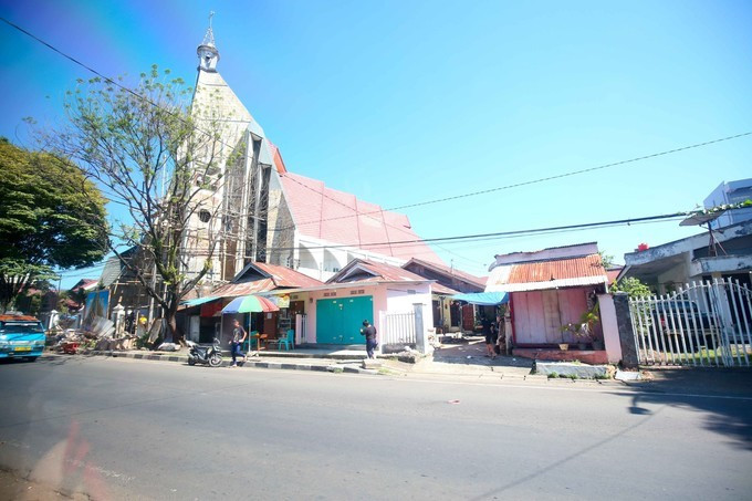 飞天耶稣像位于 美娜多 的“富人区”,附近一栋又一栋的别墅。