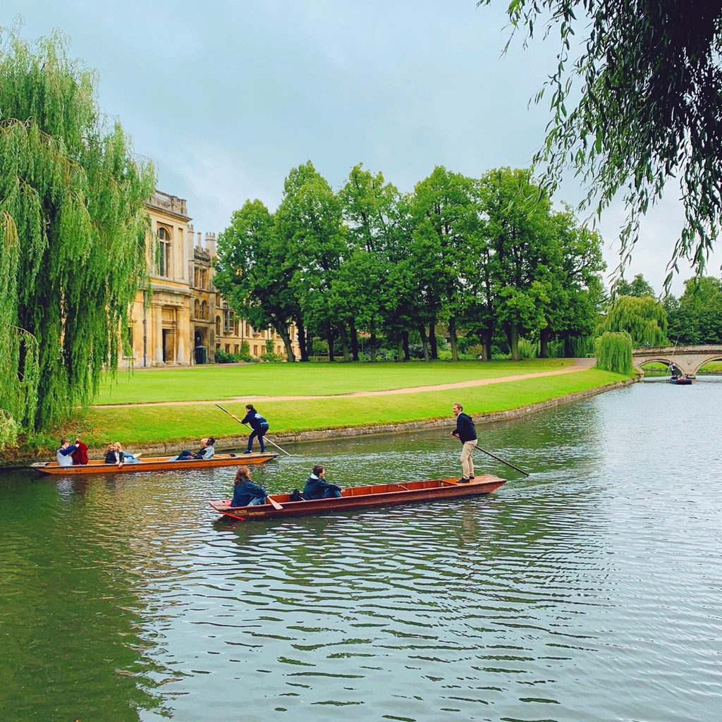 在卡姆河畔Cam River漫步,踏着草坪中的小径,听着潺潺的水声。对岸划艇俱乐部的成员们三三两两做着下水前的准备,河面上几只载着游客的小船缓缓滑行,一幅和谐宁静的风景画。
