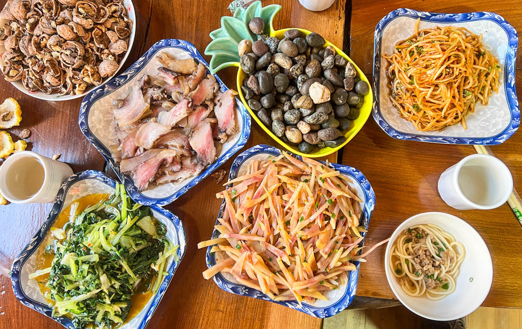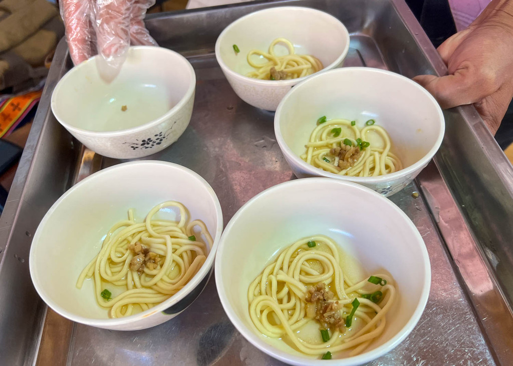 介绍我们前去吃饭的当地朋友见了我们的反应,在一旁偷着乐,见我们都百思不得其解的望着他时,他才告诉我们,这石子并不是用来吃的,而是用来计数的,我们要用的午餐是当地的非常有名的加加面,每一碗只有几根面条,不停地吃,主人会不停的加,每吃一碗,就拿出一颗小石子用来记数,看最后谁吃得最多。