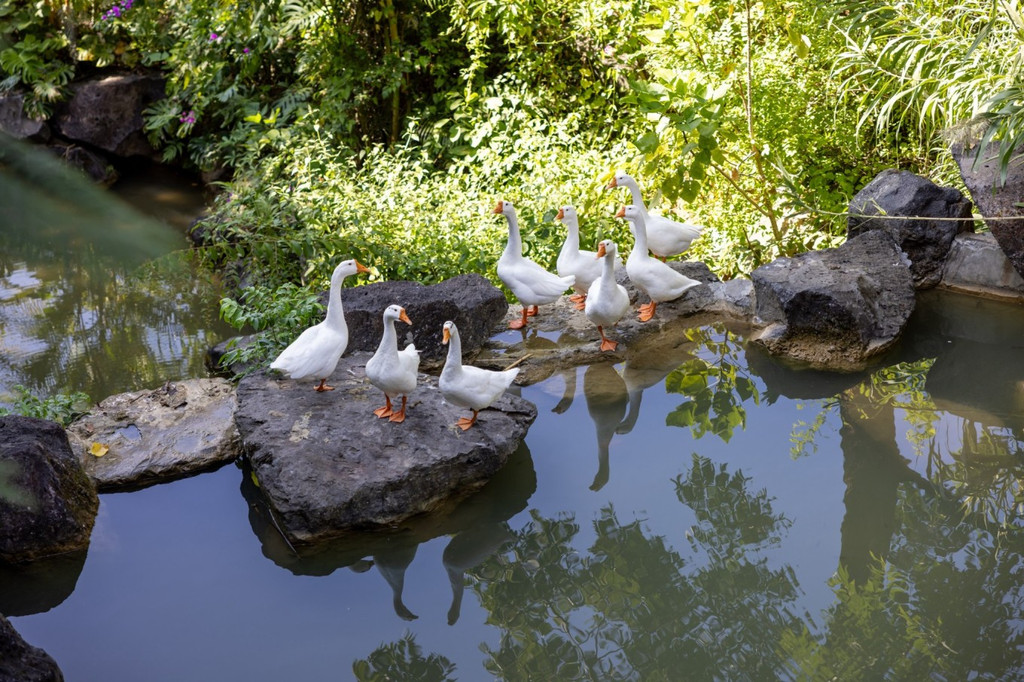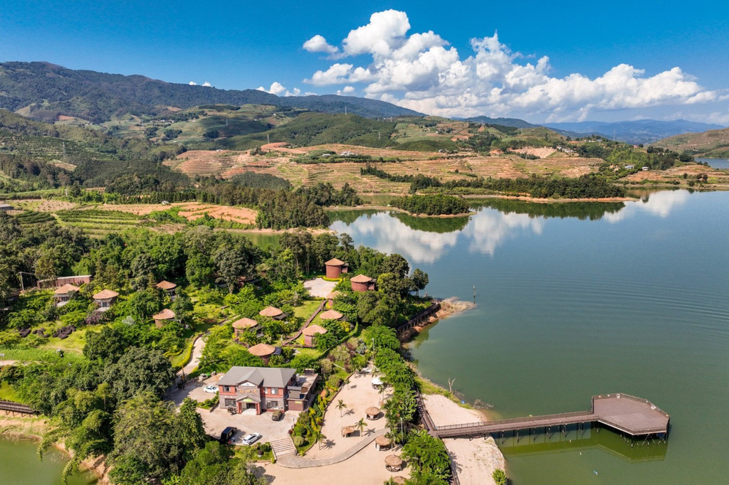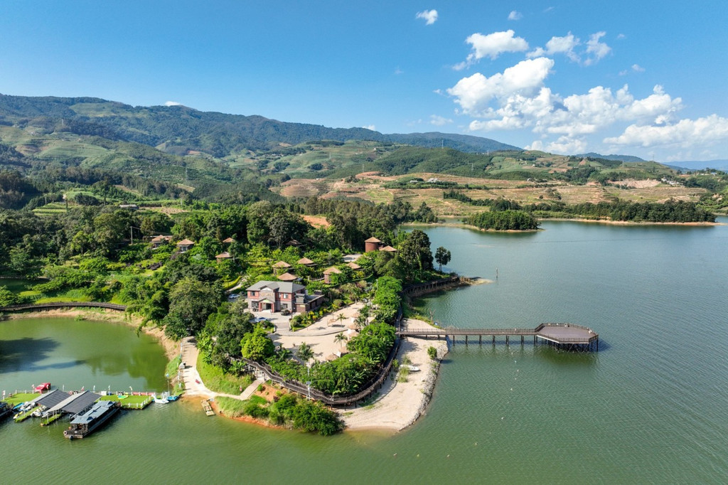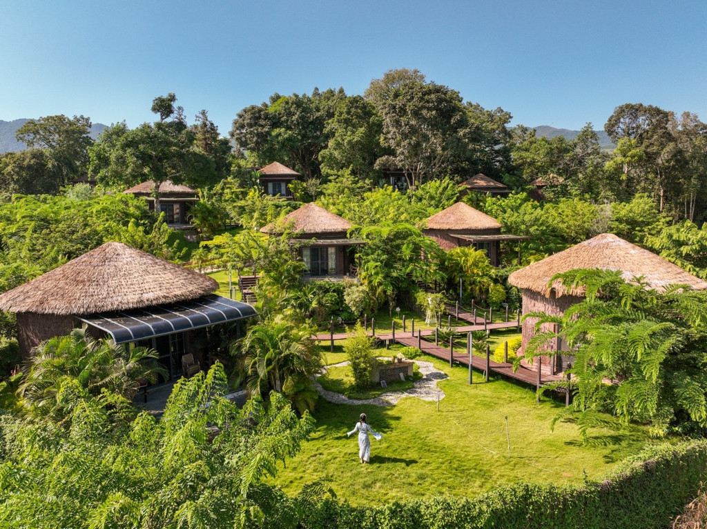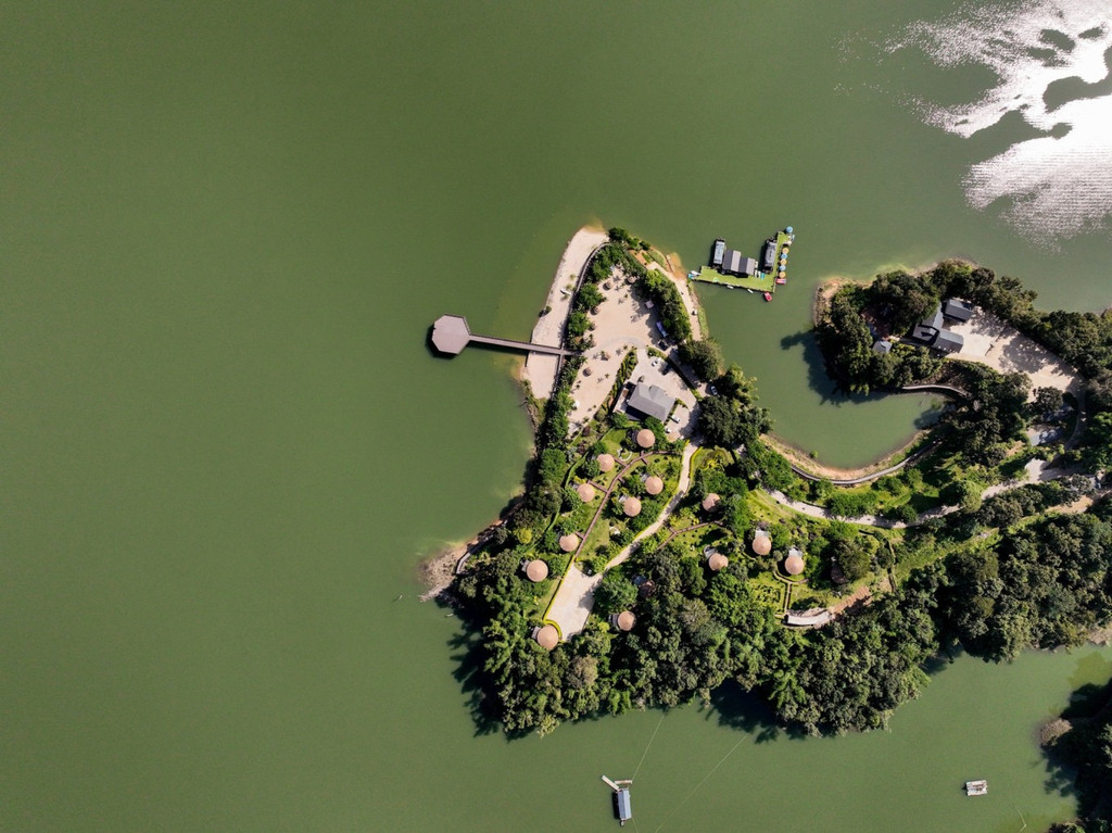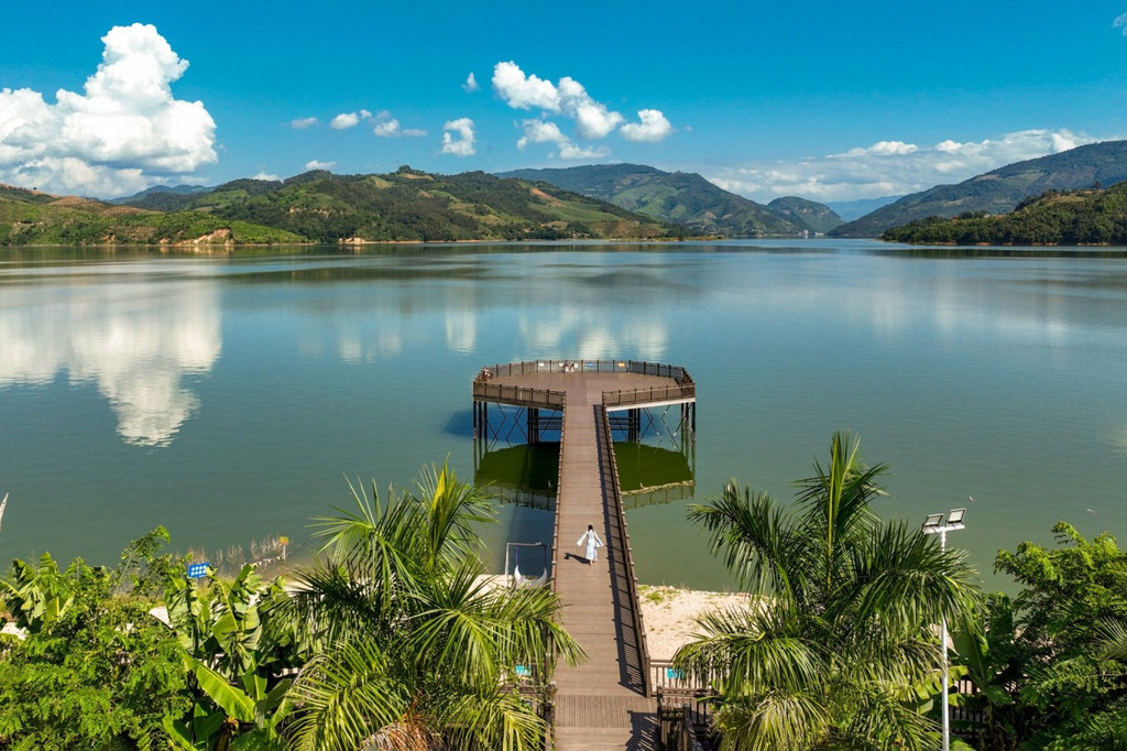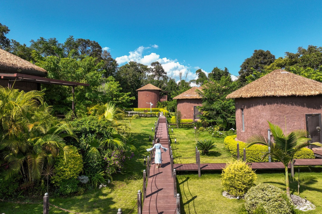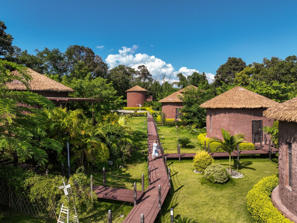 来到陇川县勐约乡的龙江西岸,周边分布有大量的景颇族以及少量傈僳族,翠绿丰茂的绿植透露出亚热带风情之美,一间间温泉民宿小屋就错落交织在江畔边,像长在树林草地间的一朵朵蘑菇,这就是泊心湾度假区的温泉民宿,这是童话故事里才会出现的场景,每个小屋麻雀虽小五脏俱全,每套都带有一个露天温泉泡池。温泉水是纯天然地热温泉,属含硫温泉,对人体有益。江水澄澈碧绿,朵朵白云停在山上,乘坐快艇飞驰在江面上,凉爽无比。塑木环湖栈道适合拍照,带着家人来乘坐画舫船静静观赏美景,钓鱼船可边钓边烤现钓现吃。
