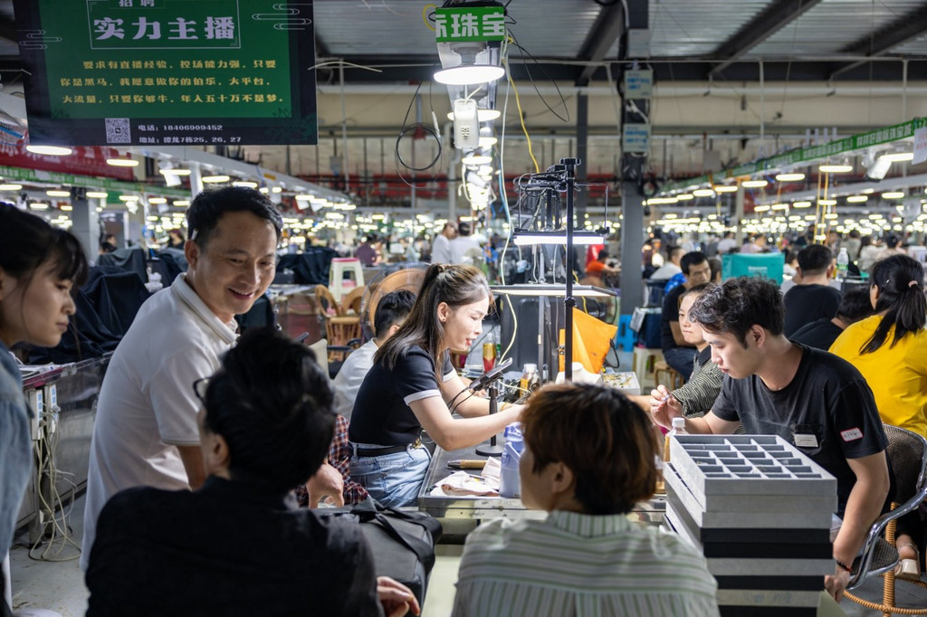 新发现!夜幕降临,瑞丽看上去安安静静,来到这一切才刚刚开始,一盏盏直播灯亮起,密集型主播汇聚于此,呐喊着介绍着,他们被人群簇拥着,大刀阔斧砍价,痛痛快快下单,人声鼎沸,热闹非凡。瑞丽这座小城渐渐复苏,一件件玉石手镯、吊坠、摆件,在一次次的电子叫卖中被快速包好运往各地。据说短短几个月,直播基地一期1300米的米柜就已满员,拥有100余家直播间,在此创造着日均约千万的销售纪录。
