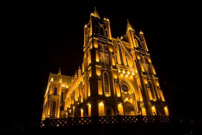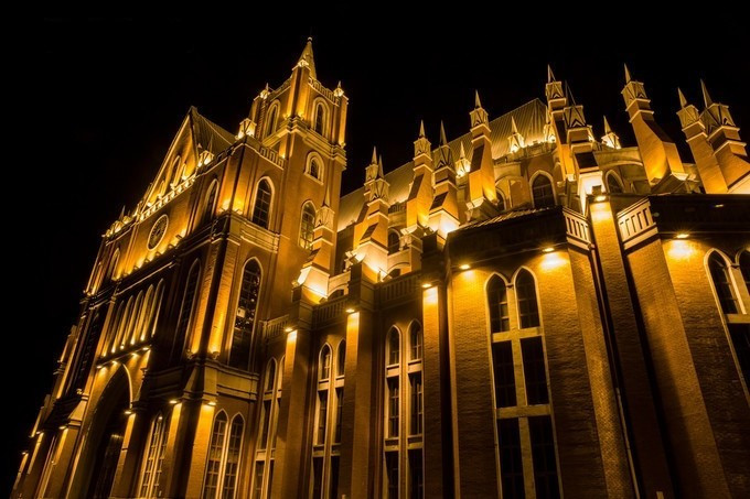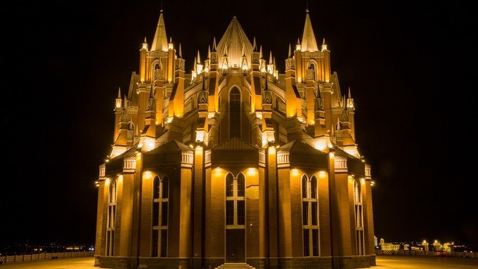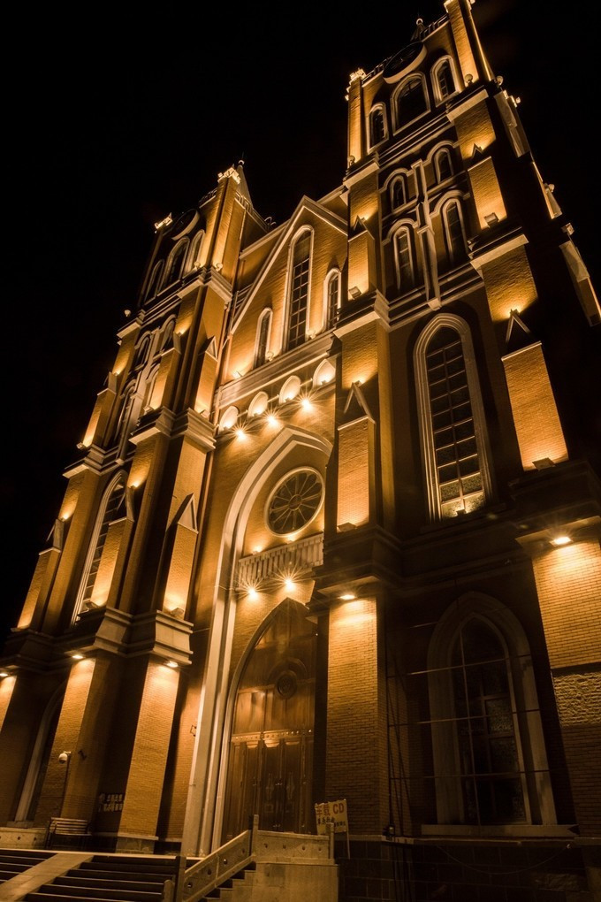 夜晚中的婚礼宫在灯光的照耀下,更显神圣。