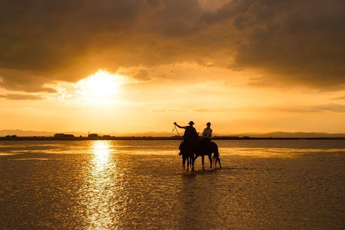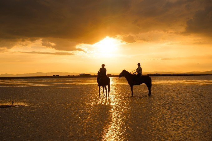 我们的雪峰哥也非常擅长骑马,他们是马背上的民族。 傍晚,在 黑山 山顶附近一个没有名字的湖泊中,傍晚在此看落日中的飞鸟
