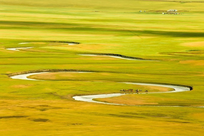 第一 曲水 莫日格勒河,蜿蜒向远方。 如果放大,我会觉得有点像蜿蜒的长龙。