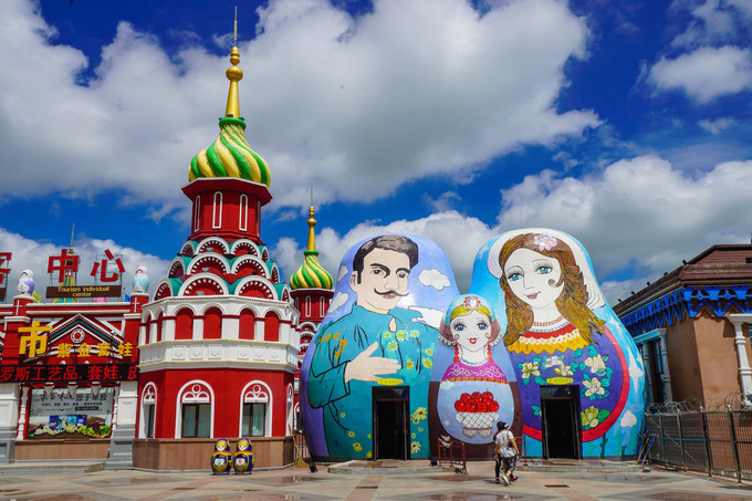 厕所也是干干净净的。 来 呼伦贝尔 ,这样的木刻楞小木屋,值得一试。 【美食】:借用雪峰哥的话说,来我们 呼伦贝尔 旅行,一定会吃胖的。这里的美食实在是太多了。这里不仅有:烤全羊、烤羊排、水煮肉、手把肉、羊 肉串、铁锅炖、火锅、特色锅茶里还有很多 俄罗斯美食等等。在这里吃胖这件事,实在是太容易了。再加上这里的菜和 东北 菜一样,分量实在是太足了。 【提示】: 基本药物: 防蚊液(必须准备好,尤其是在野外活动时,务必先喷洒防蚊液); 普通感冒药;抗炎药;胃肠道药品等。 日用品:防晒霜,帽子,雨伞,长袖外套,运动鞋,便携式洗护用品现金,便携式零食。呼伦湖满洲里套娃广场俄罗斯满洲里俄罗斯 套娃广场是 俄罗斯 唯一的以 俄罗斯 传统手工艺品套娃为主题的旅游娱乐广场。 它体现了满洲, 中国 , 俄罗斯 和 蒙古 的特色以及这三个国家的融合。 广场的规划面积为540,000平方米,主题广场的面积为60,000平方米。 这是一个集旅游,娱乐和娱乐于一体的 满洲里 地标性旅游区。