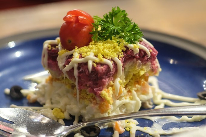 雪峰哥推荐我们必点的—皇后 沙拉 ,味道确实很不错。 第一次觉得吃到如此美味的 沙拉 ,而且还很有层次感。