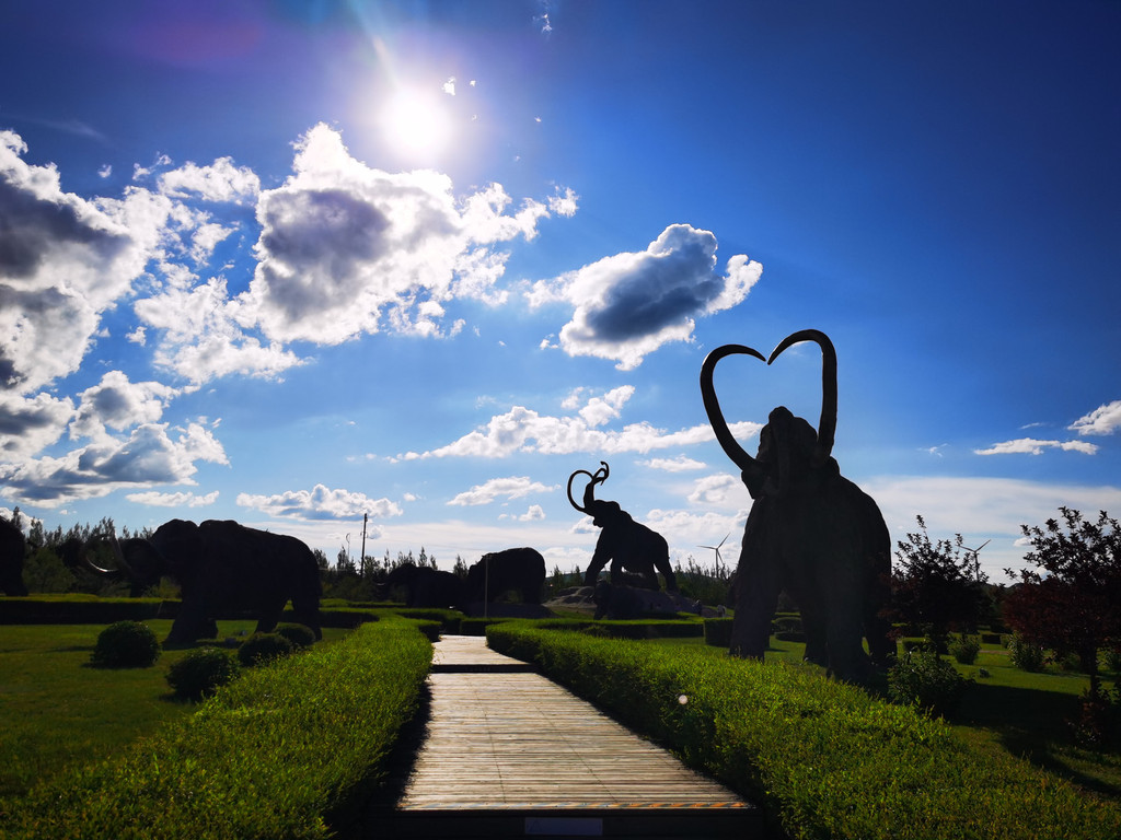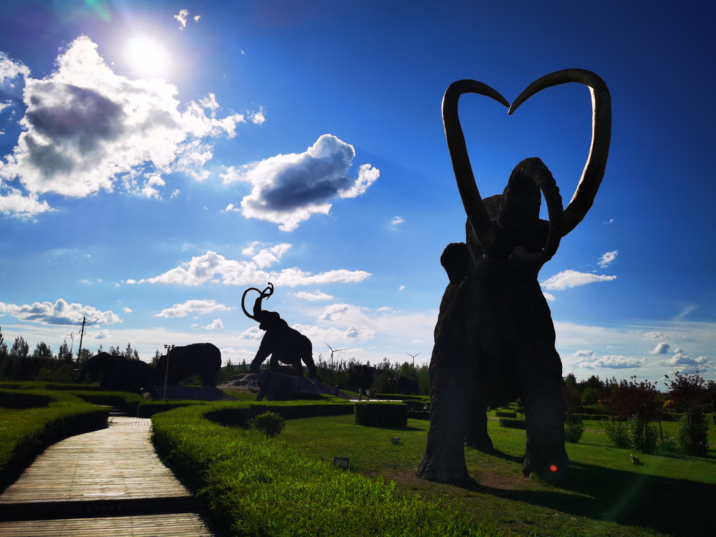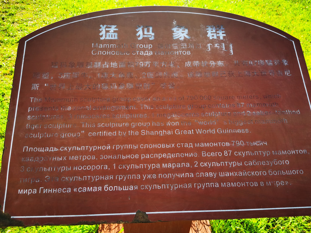 猛犸象在远古时期是巨无霸的存在,虽然灭绝,但是它们却以另一种方式被保存了下来,扎赉诺尔猛犸象公园就是一种记录。在这座公园内共有古生物雕塑93座,猛犸象群雕塑87只、3座犀牛、1座大角鹿、2座剑齿虎。其中最大的猛犸象王高度15.77米,长15.9米,宽4.4米。园内的金龙湖面积16万平方米,湖面宽广。