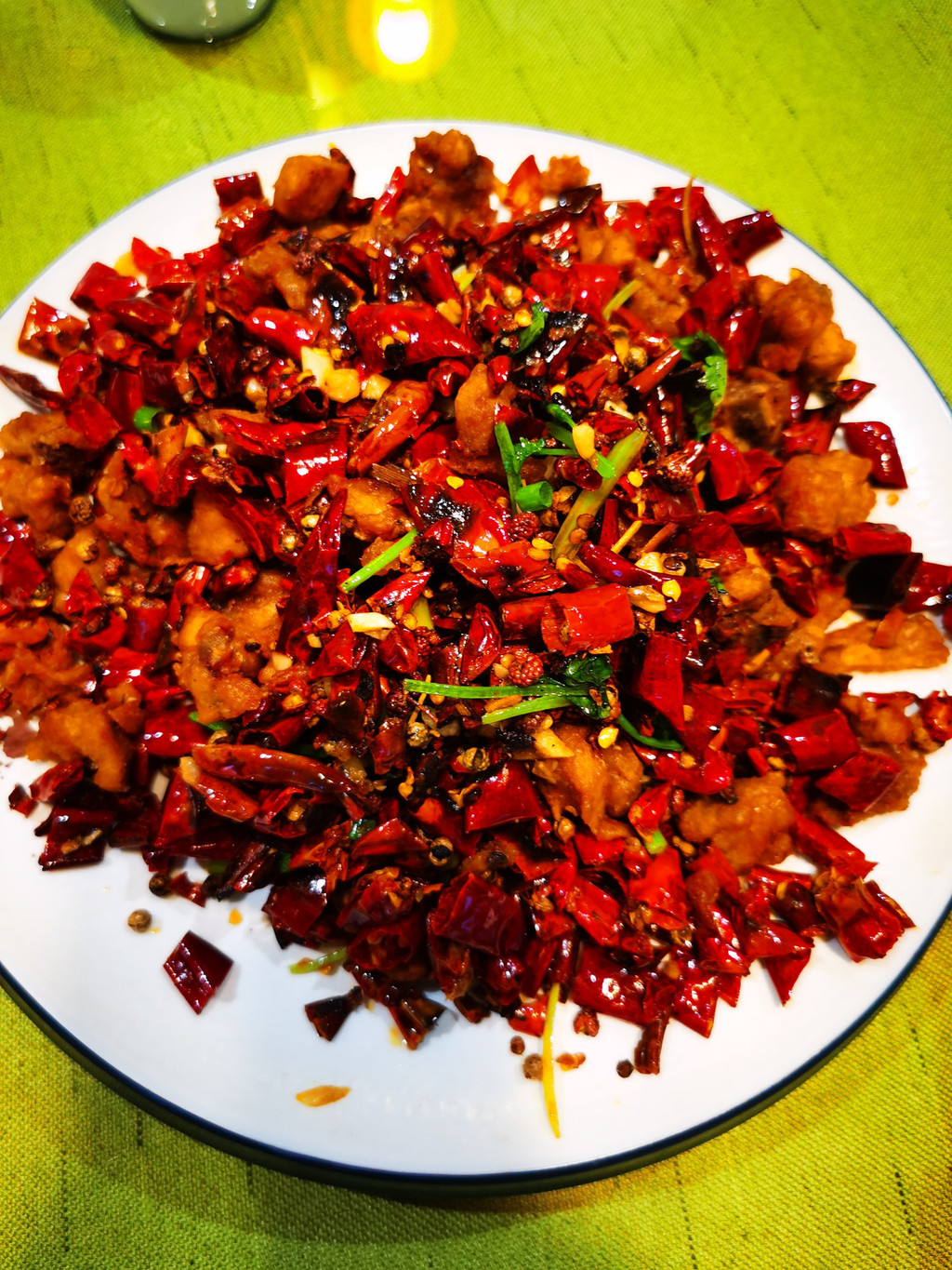 晚上在春熙小馆吃的辣子鸡、金汤狮子头、压锅黄豆角、黄瓜拉皮、糖饼和葱花饼。共计消费160元。