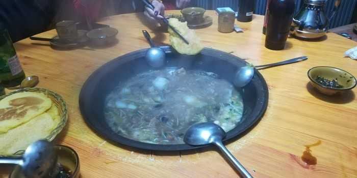 一天的行程结束了用累并快乐着形容此刻的我们太合适不过了。补充体力我们一起吃了一餐正规的蒙餐,这里的羊肉很纯正没有膻味,一直不喜欢羊肉的我一个有着减肥大业的我尽然也吃了个酒足饭饱。