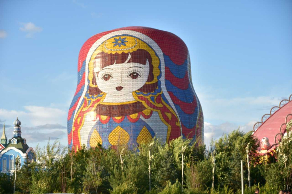 来到 满洲里 首先呈现在眼前的大套娃就是 满洲里 标志性的建筑。看到它的建筑风格就明白了为甚麽说是童话般的 满洲里 。这是一座拥有百年历史的城市融合中俄蒙三国风情被誉为 中亚 之窗。套娃广场门票200里面娱乐设施很多也包括 俄罗斯 大马戏。如果只是拍照的话就不建议购票了,外面也很漂亮。听说只要入住套娃酒店免费赠送门票可惜我们当初没选择套娃酒店。在套娃景区出来已经下午4点多给小韩打电话才知道小韩家就在 满洲里 ,他热情邀请我们去他家做客,顺便载着我们国门转了一圈,他不推荐我们买票进景区,说国门极没有性价比。