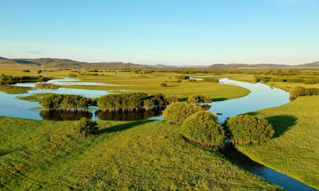 额尔古纳 湿地原名 根河 湿地,2009年之后更名为 额尔古纳 湿地。湿地位于 额尔古纳 市郊,这里地形平缓开阔, 额尔古纳 河的支流 根河 从这里蜿蜒流过,形成了壮观秀丽的河流湿地景观。登上观景台俯瞰湿地,蜿蜒的河水环抱着草甸,两岸灌木丛生,花草风中摇曳,远处树木连绵成片。出了湿地景区有一家网红冷饮店,冰激凌相当不错值得推荐。