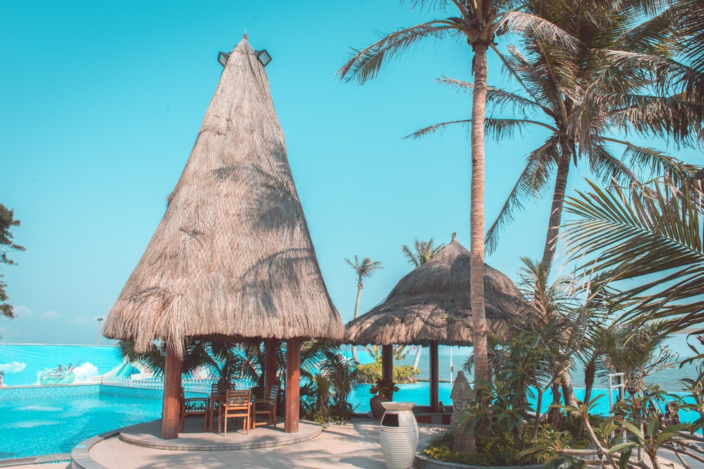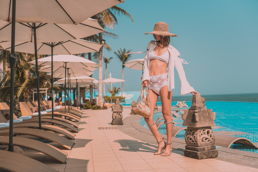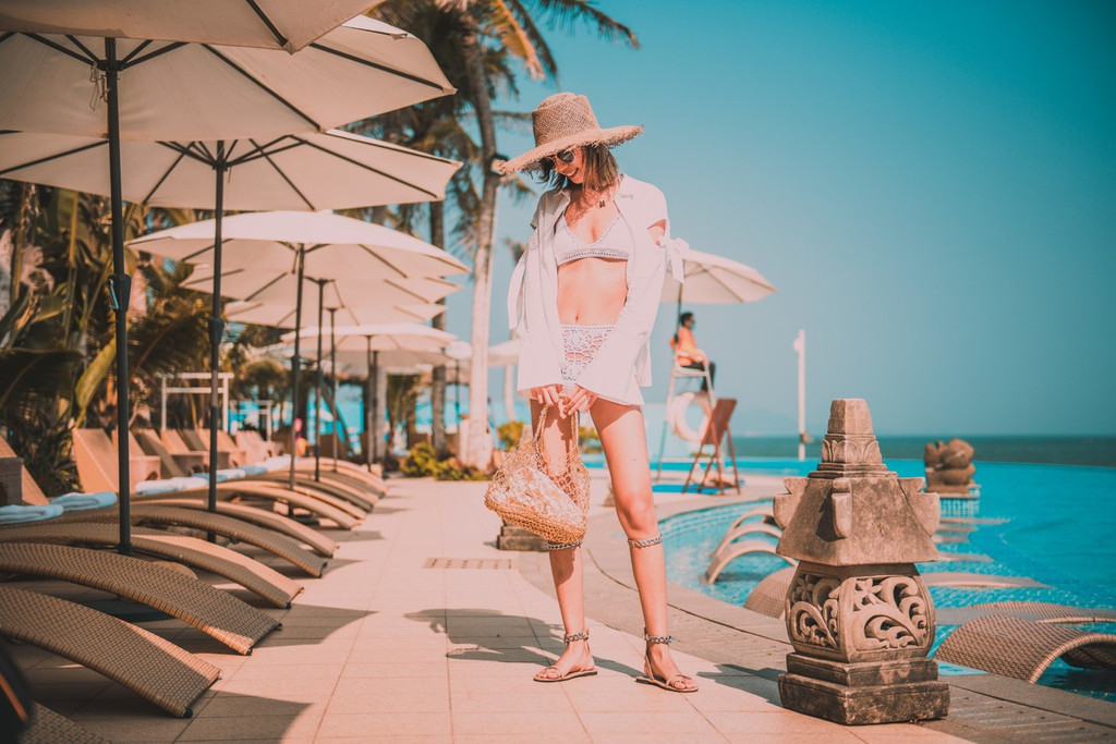 阳光、椰树、泳池、比基尼