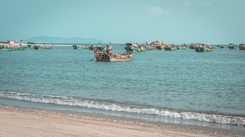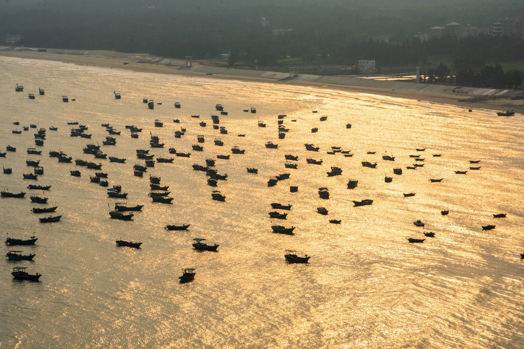 看渔船在海面来往穿梭