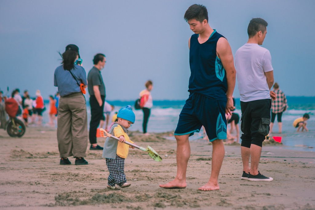 海滩已经挤满了大小老嫩