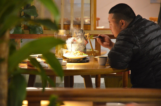 缘贡来到这家餐厅,发现这个餐厅的环境是很突出的。店面布置得很醒目,大厅装修为中国传统的雕粱檐柱与重工业蒸汽朋克之间的结合,相得益彰。