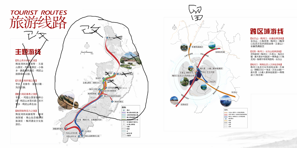 梅河口城市湿地观光带→人民公园→海龙湖→古城村民宿(小杨乡)→女真摩崖石刻→鸡冠山国家森林公园