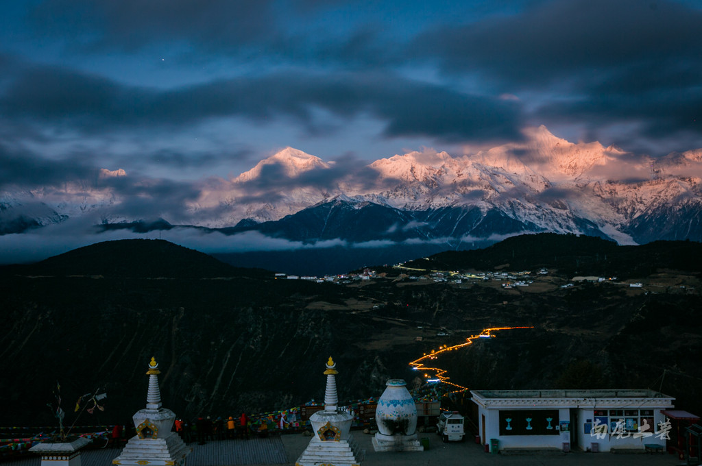 在下榻的酒店,夜晚便可以看到飞来寺村斑斓的夜景,和若隐若现的雪山。