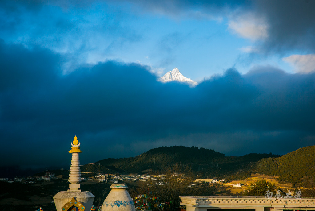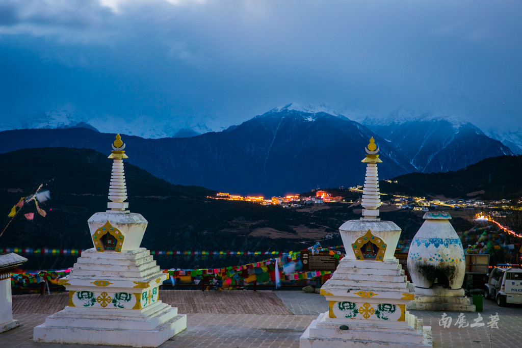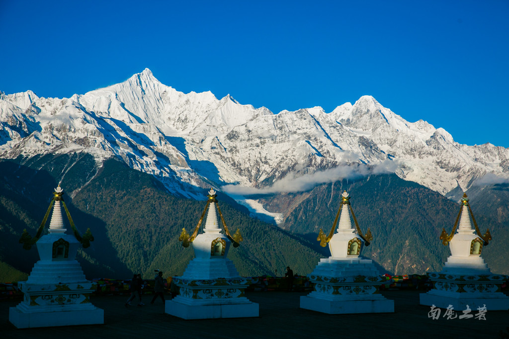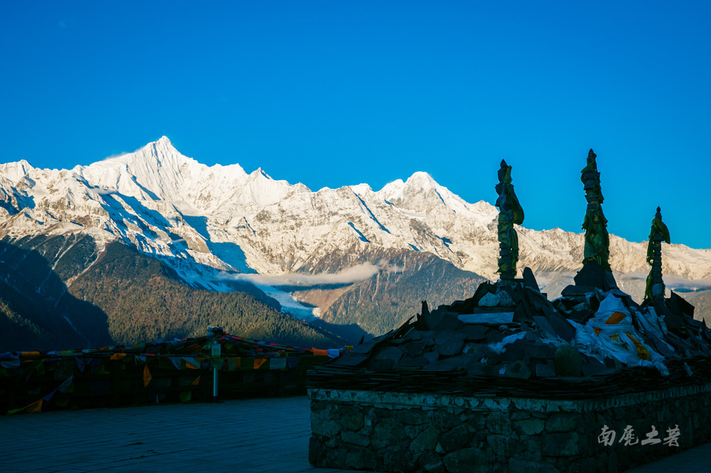 雾浓顶观景台,又叫十三白塔迎宾台,好客的德钦人在这里修建了梅里十三迎宾塔,代表梅里的十三座山峰,与梅里十三雪峰遥遥相望。