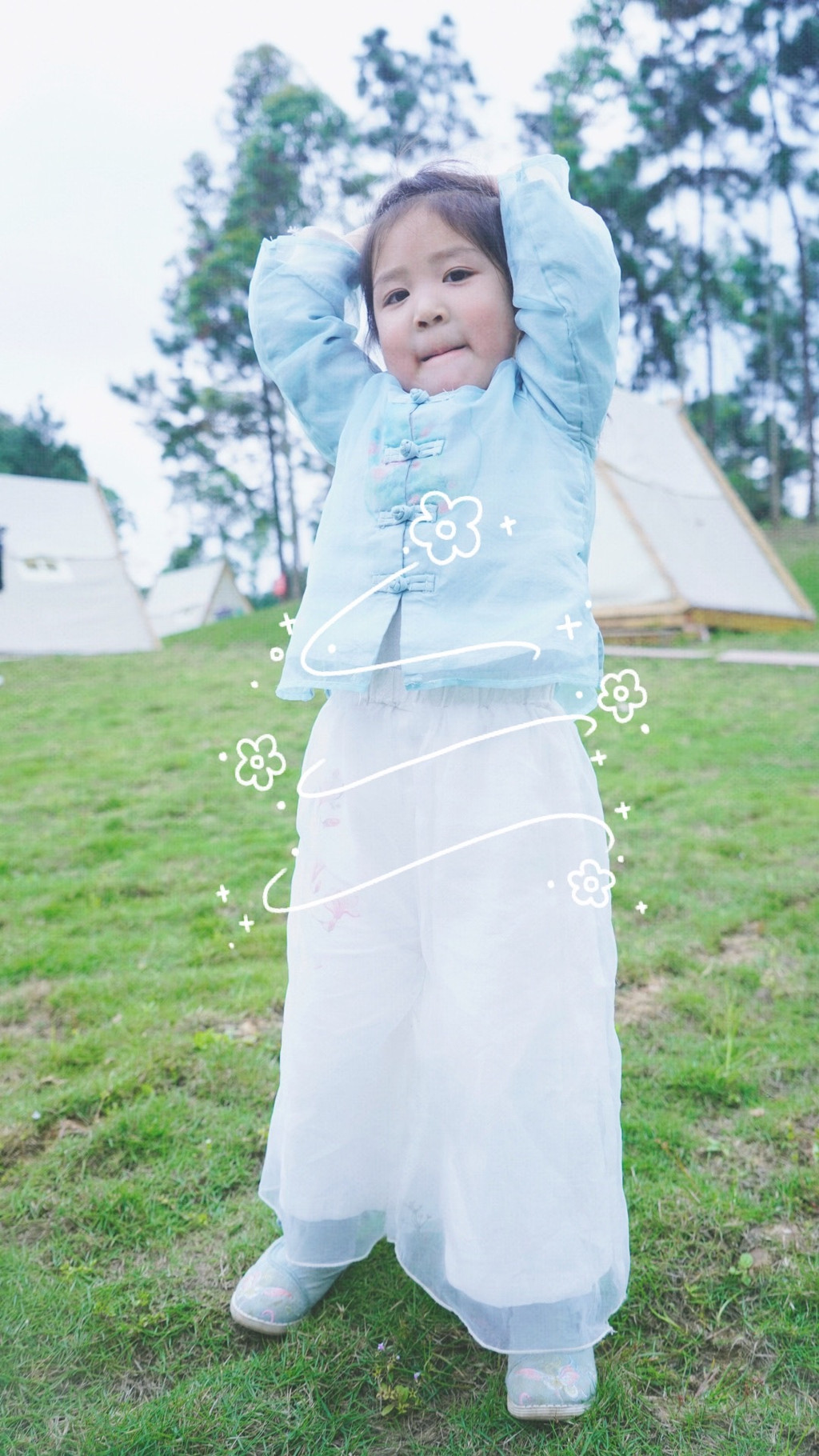 因为两小只的体重和身高限制,现场有一些刺激的高空类项目都没有参与,古装剧里才有的威压表演,还可以上去体验做一次水上飘的仙侠客。