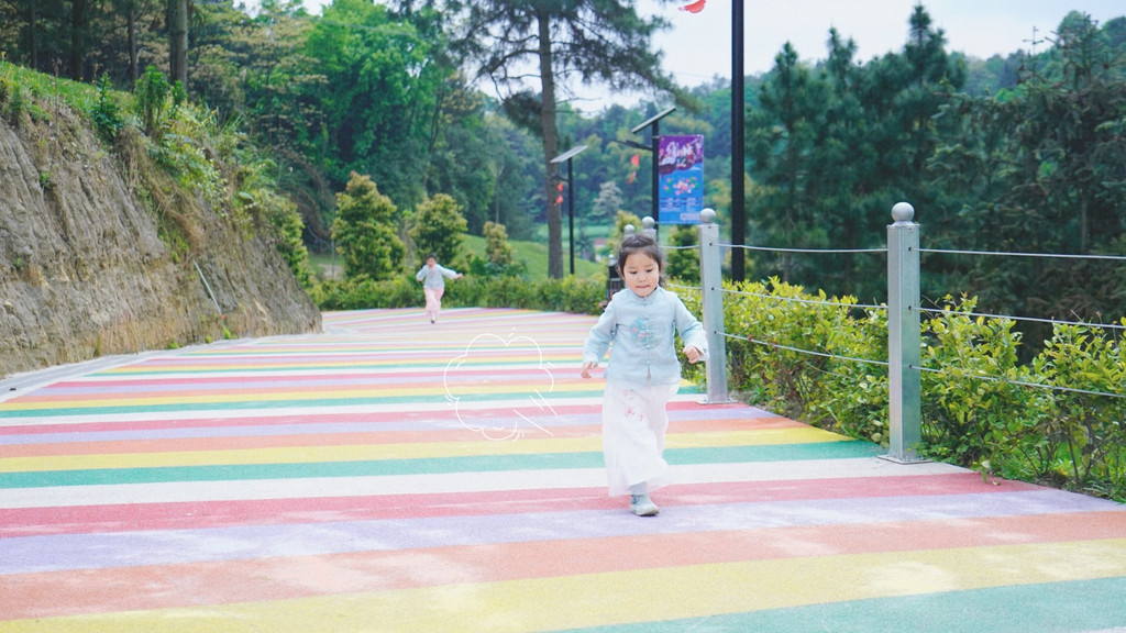 经过玩耍的路道上,彩色的路让小朋友耍的十分开心,彷佛走在一座彩虹桥上,随手一拍就是大片。