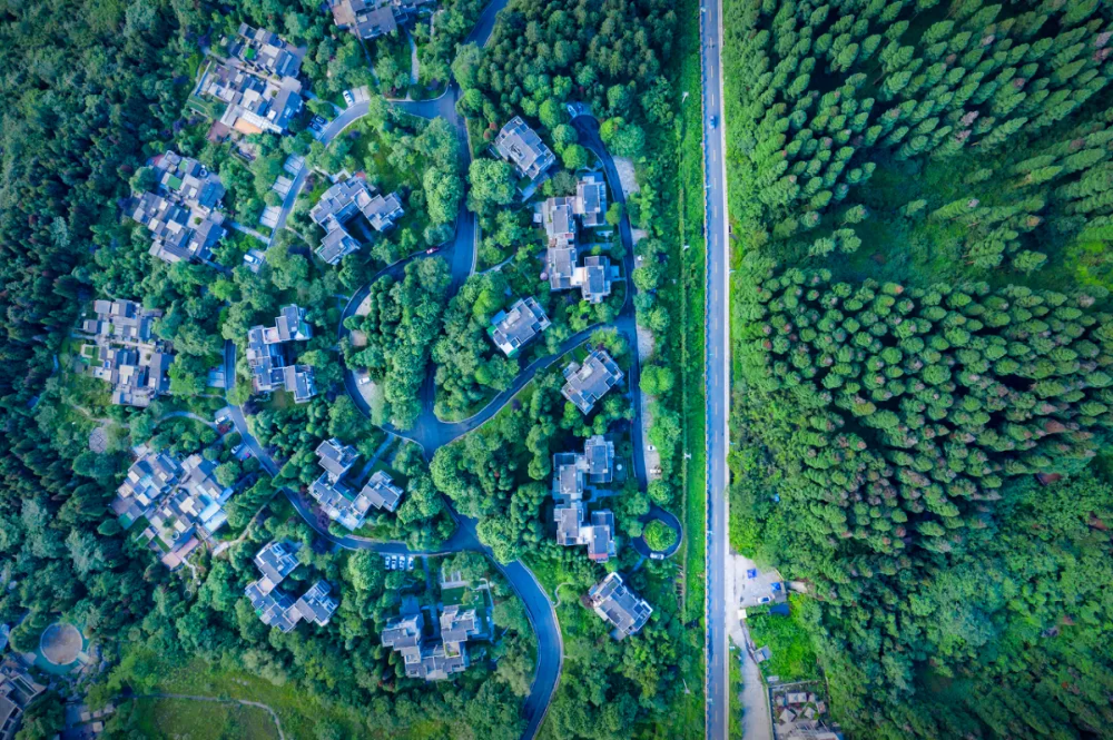 七里坪国际旅游度假区,一幢幢“长在森林里”的房子,仿佛像孩童们摆弄的积木玩具。