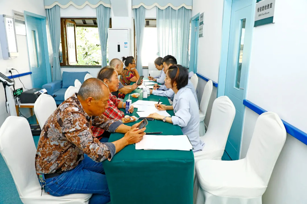 七里坪不仅建有诊所、健康管理中心、国医馆等健康医疗机构 (一座综合性医院正在建设中) ,并且每年还邀请康养和医学界的专家、名医到七里坪开展康养科普宣传。这是2020年8月,四川省康养专家组在七里坪健康管理中心指导工作。