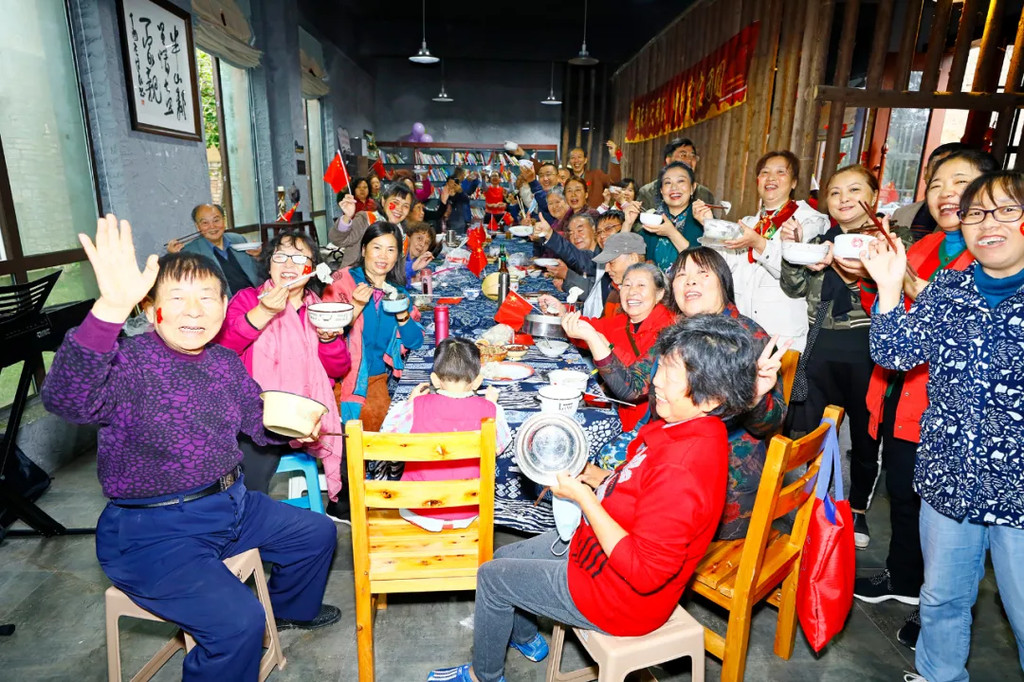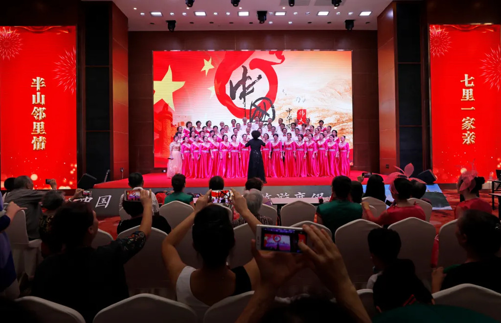 2020年10月1日,国庆、中秋双节喜相逢,七里坪的居民们举办了“邻里宴”,大家兴高采烈地欢聚一堂,品尝美食,欢度“双节”。