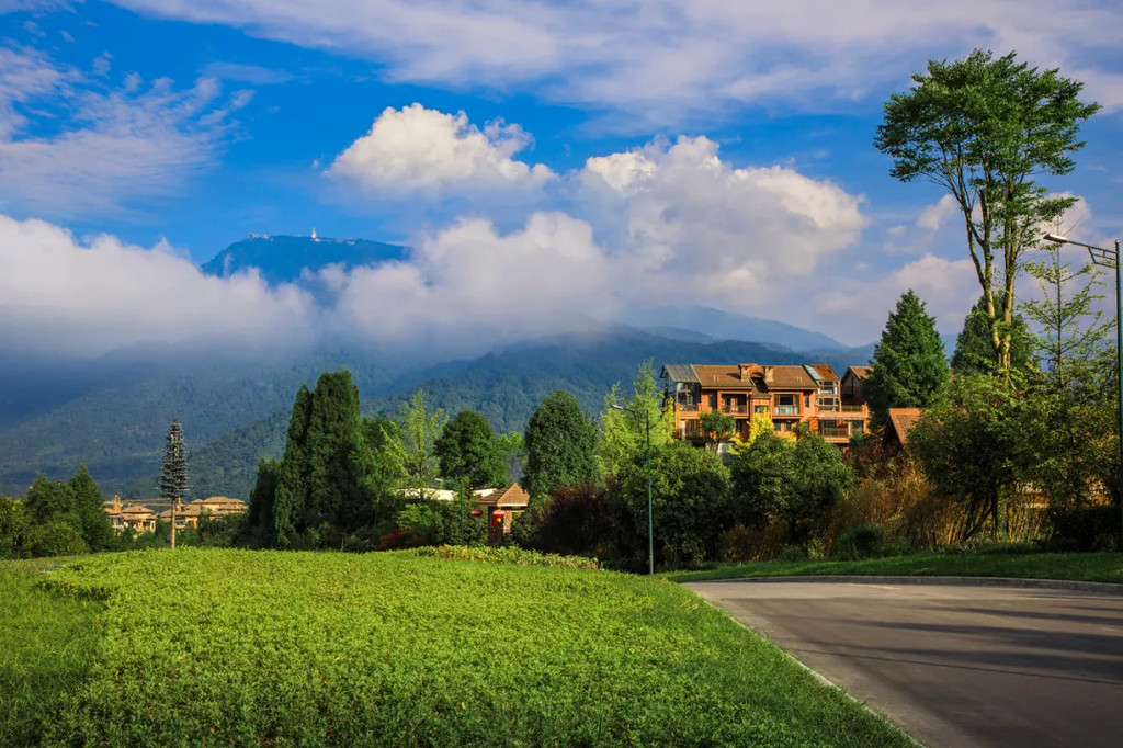 在七里坪国际旅游度假区,随处可以“推窗见佛”,眺望峨嵋山最高峰—金顶上的普贤菩萨座像。