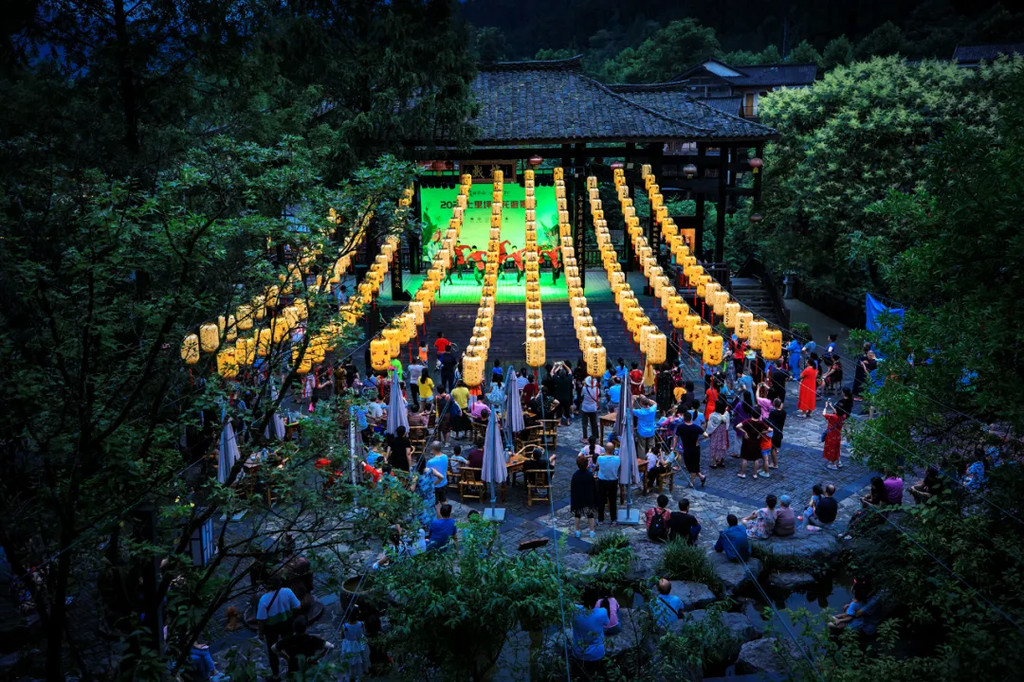 盛夏季节,七里坪的村民和度假区的业主总是喜欢围坐在风情小镇上的戏楼前,看戏纳凉。