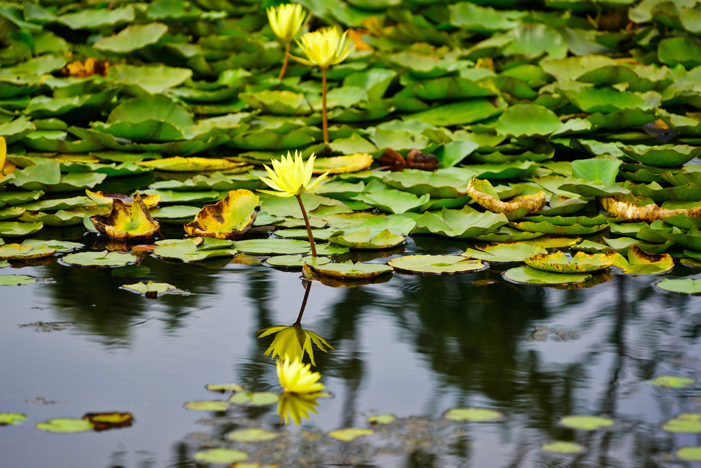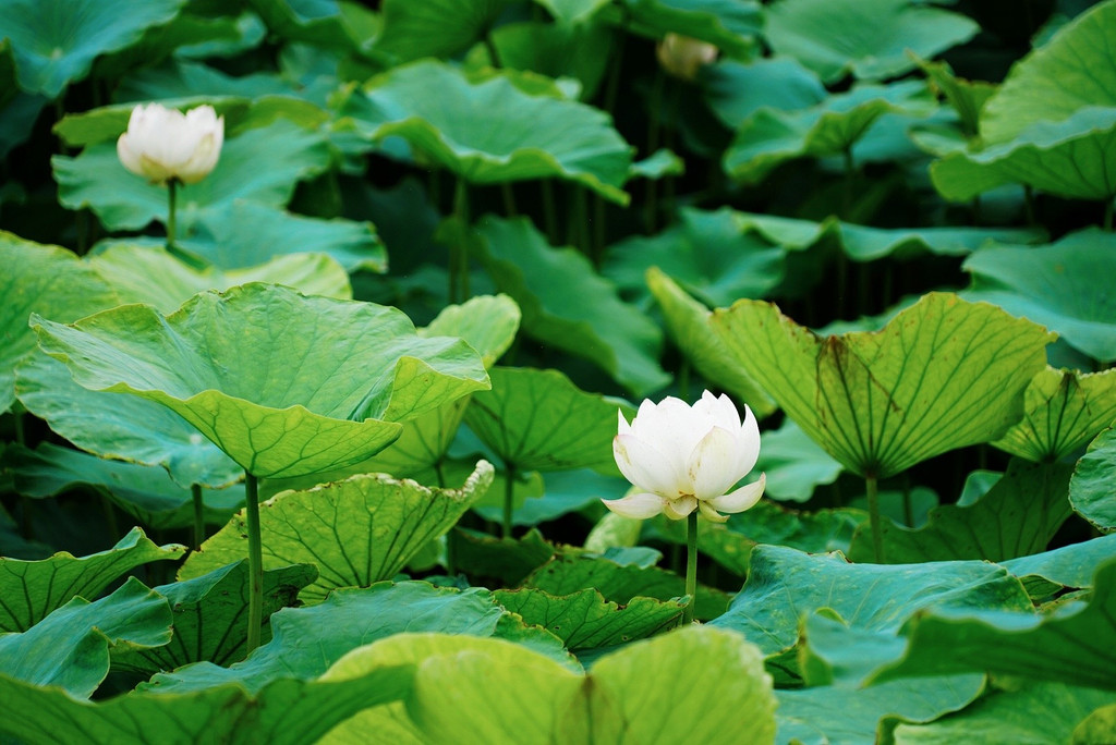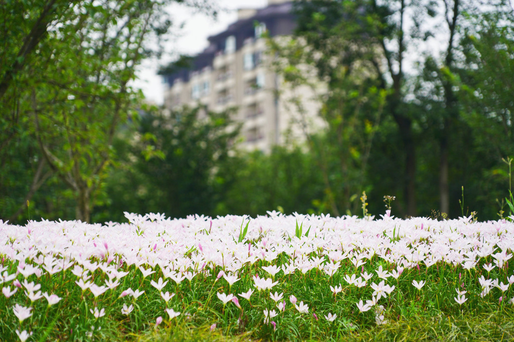 夏至已到,眉山樱花博览园里满目苍翠。抬眼一望,绿意盎然的小径里,葱兰开得正艳。夏天是池塘荷跳雨,跳了珍珠还聚。错过了三月的樱花浪漫,却迎来了六月荷塘里的金莲绽放。